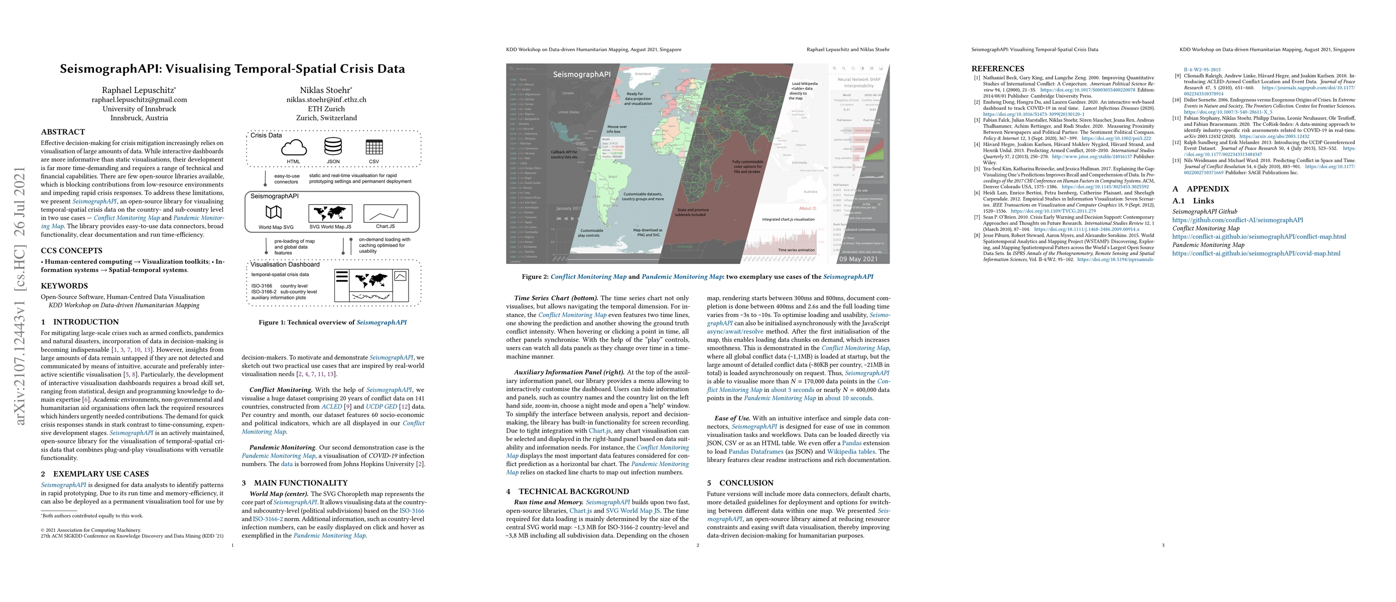 SeismographAPI is an open-source library for visualizing temporal-spatial crisis data, providing easy-to-use connectors, broad functionality, and runtime efficiency to support rapid crisis responses.
