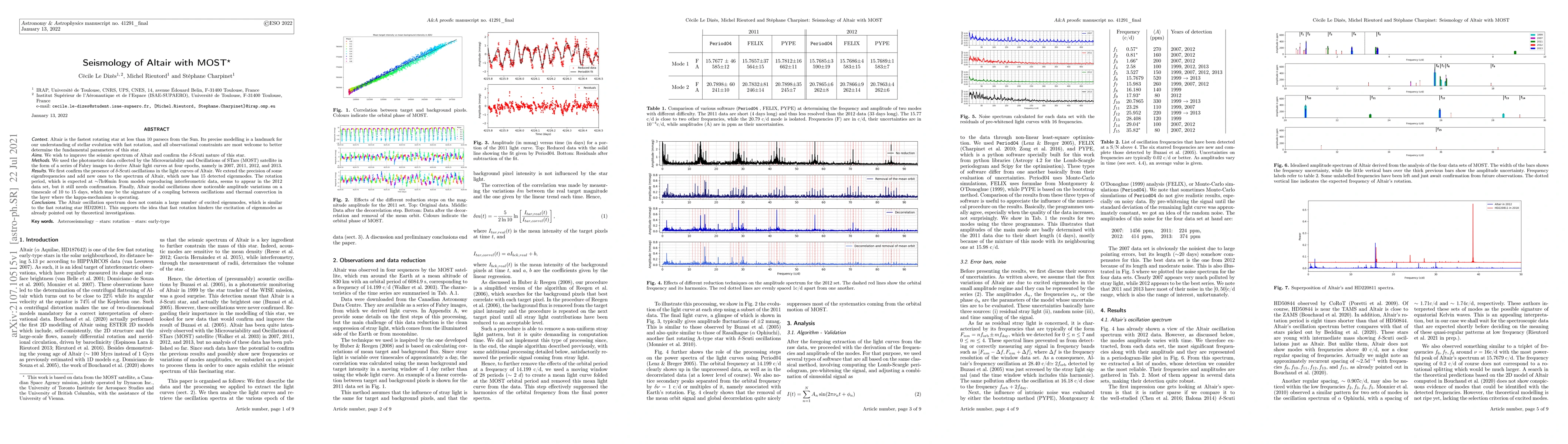 This study uses MOST satellite data to analyze Altair's seismic spectrum, confirming its $\delta$-Scuti nature and detecting 15 eigenmodes, with some frequencies refined and new ones identified. The observed amplitude variations suggest a coupling between oscillations and thermal convection, supporting the theory that fast rotation limits eigenmode excitation.