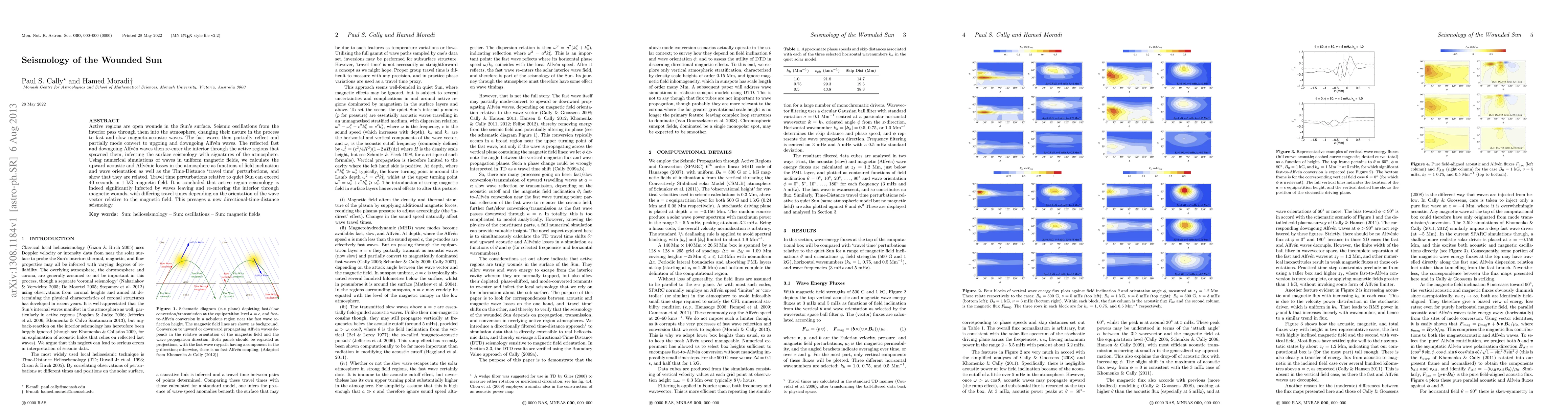 Seismic waves from the Sun's interior interact with its magnetic fields, causing changes in travel times that can reveal information about the atmosphere. These interactions, known as 'seismology of the Wounded Sun,' may allow for a new directional-time-distance seismology.