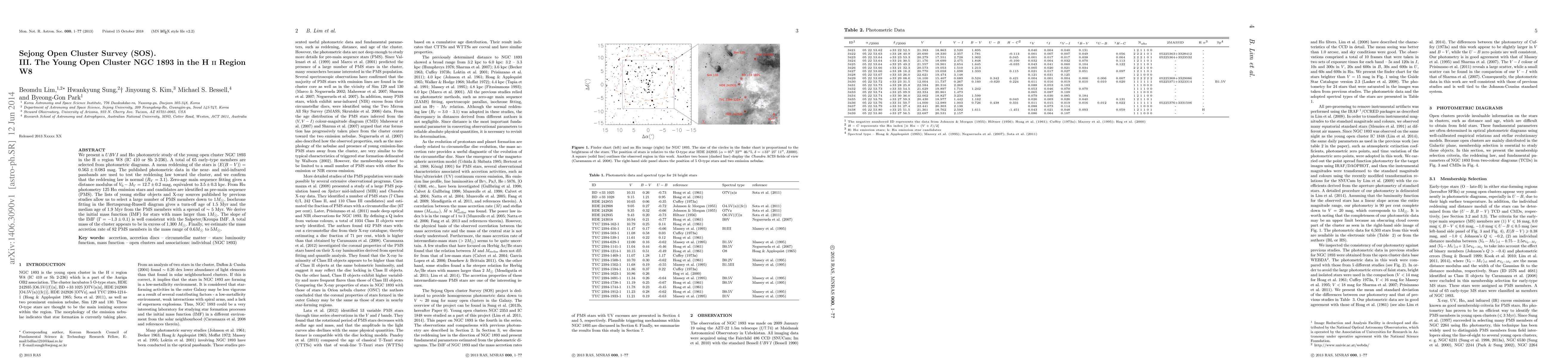 This study investigates the young open cluster NGC 1893 in the H II region W8, finding a distance of 3.5 kpc, a turn-off age of 1.5 Myr, and an initial mass function consistent with the Salpeter/Kroupa IMF.