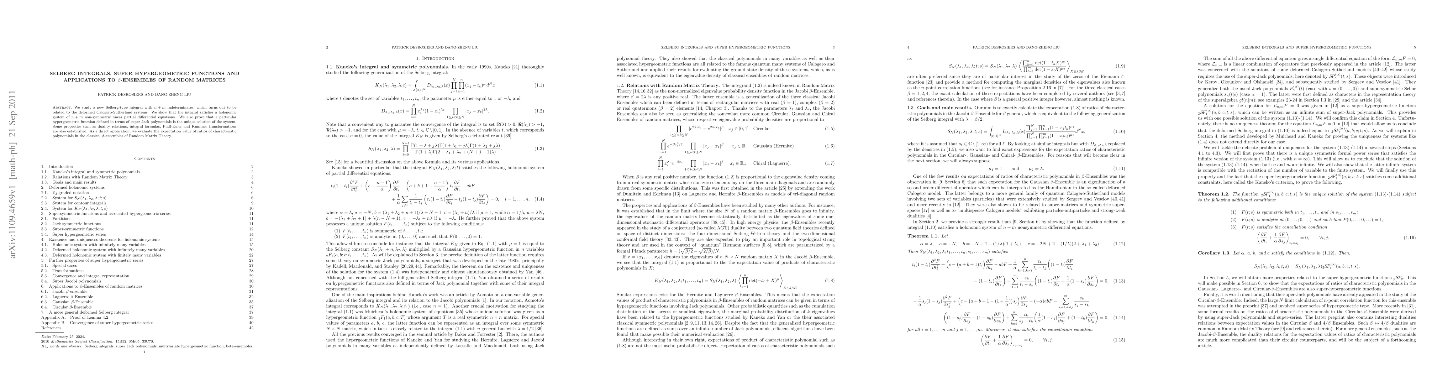 We study a new Selberg-type integral with $n+m$ indeterminates, which turns out to be related to the deformed Calogero-Sutherland systems. We show that the integral satisfies a holonomic system of $n+m$ non-symmetric linear partial differential equations. We also prove that a particular hypergeometric function defined in terms of super Jack polynomials is the unique solution of the system. Some properties such as duality relations, integral formulas, Pfaff-Euler and Kummer transformations are also established. As a direct application, we evaluate the expectation value of ratios of characteristic polynomials in the classical $\beta$-ensembles of Random Matrix Theory.