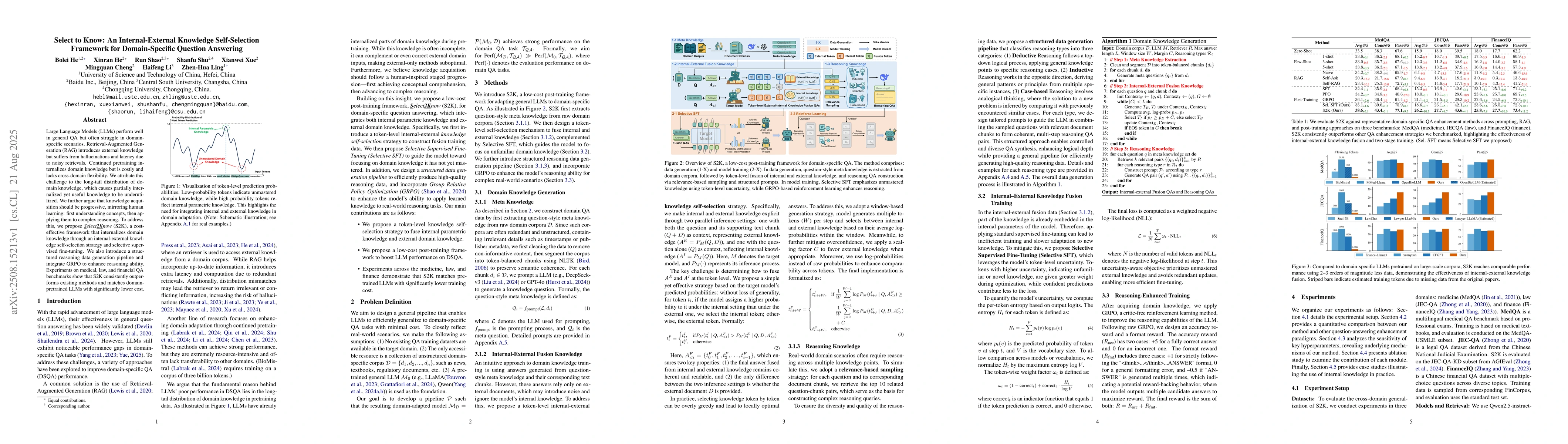 Large Language Models (LLMs) perform well in general QA but often struggle in domain-specific scenarios. Retrieval-Augmented Generation (RAG) introduces external knowledge but suffers from hallucinations and latency due to noisy retrievals. Continued pretraining internalizes domain knowledge but is costly and lacks cross-domain flexibility. We attribute this challenge to the long-tail distribution of domain knowledge, which leaves partial yet useful internal knowledge underutilized. We further argue that knowledge acquisition should be progressive, mirroring human learning: first understanding concepts, then applying them to complex reasoning. To address this, we propose Selct2Know (S2K), a cost-effective framework that internalizes domain knowledge through an internal-external knowledge self-selection strategy and selective supervised fine-tuning. We also introduce a structured reasoning data generation pipeline and integrate GRPO to enhance reasoning ability. Experiments on medical, legal, and financial QA benchmarks show that S2K consistently outperforms existing methods and matches domain-pretrained LLMs with significantly lower cost.