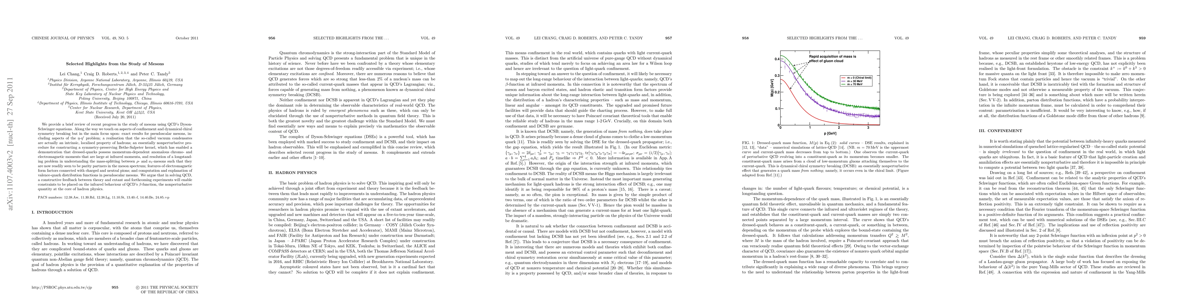 We provide a brief review of recent progress in the study of mesons using QCD's Dyson-Schwinger equations. Along the way we touch on aspects of confinement and dynamical chiral symmetry breaking but in the main focus upon: exact results for pseudoscalar mesons, including aspects of the eta-eta' problem; a realisation that the so-called vacuum condensates are actually an intrinsic, localised property of hadrons; an essentially nonperturbative procedure for constructing a symmetry-preserving Bethe-Salpeter kernel, which has enabled a demonstration that dressed-quarks possess momentum-dependent anomalous chromo- and electromagnetic moments that are large at infrared momenta, and resolution of a longstanding problem in understanding the mass-splitting between rho- and a1-mesons such that they are now readily seen to be parity partners in the meson spectrum; features of electromagnetic form factors connected with charged and neutral pions; and computation and explanation of valence-quark distribution functions in pseudoscalar mesons. We argue that in solving QCD, a constructive feedback between theory and extant and forthcoming experiments will enable constraints to be placed on the infrared behaviour of QCD's beta-function, the nonperturbative quantity at the core of hadron physics.