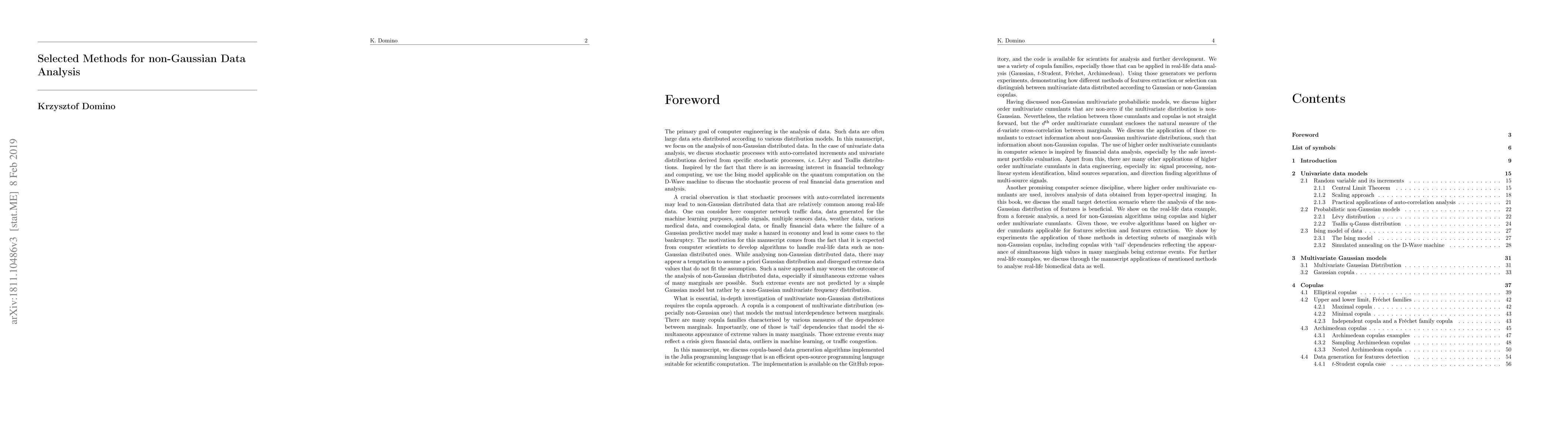 The basic goal of computer engineering is the analysis of data. Such data are often large data sets distributed according to various distribution models. In this manuscript we focus on the analysis of non-Gaussian distributed data. In the case of univariate data analysis we discuss stochastic processes with auto-correlated increments and univariate distributions derived from specific stochastic processes, i.e. Levy and Tsallis distributions. Deep investigation of multivariate non-Gaussian distributions requires the copula approach. A copula is an component of multivariate distribution that models the mutual interdependence between marginals. There are many copula families characterised by various measures of the dependence between marginals. Importantly, one of those are `tail' dependencies that model the simultaneous appearance of extreme values in many marginals. Those extreme events may reflect a crisis given financial data, outliers in machine learning, or a traffic congestion. Next we discuss higher order multivariate cumulants that are non-zero if multivariate distribution is non-Gaussian. However, the relation between cumulants and copulas is not straight forward and rather complicated. We discuss the application of those cumulants to extract information about non-Gaussian multivariate distributions, such that information about non-Gaussian copulas. The use of higher order multivariate cumulants in computer science is inspired by financial data analysis, especially by the safe investment portfolio evaluation. There are many other applications of higher order multivariate cumulants in data engineering, especially in: signal processing, non-linear system identification, blind sources separation, and direction finding algorithms of multi-source signals.