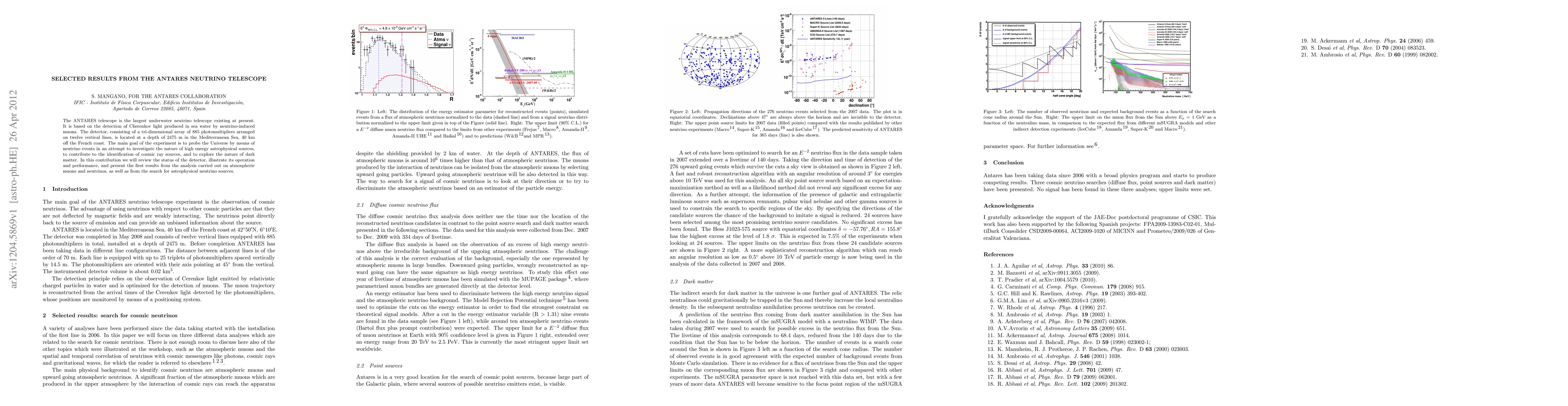 The ANTARES neutrino telescope detects Cherenkov light from neutrinos to study high-energy astrophysical sources, cosmic rays, and dark matter, presenting first results from atmospheric muons and searches for astrophysical neutrino sources.