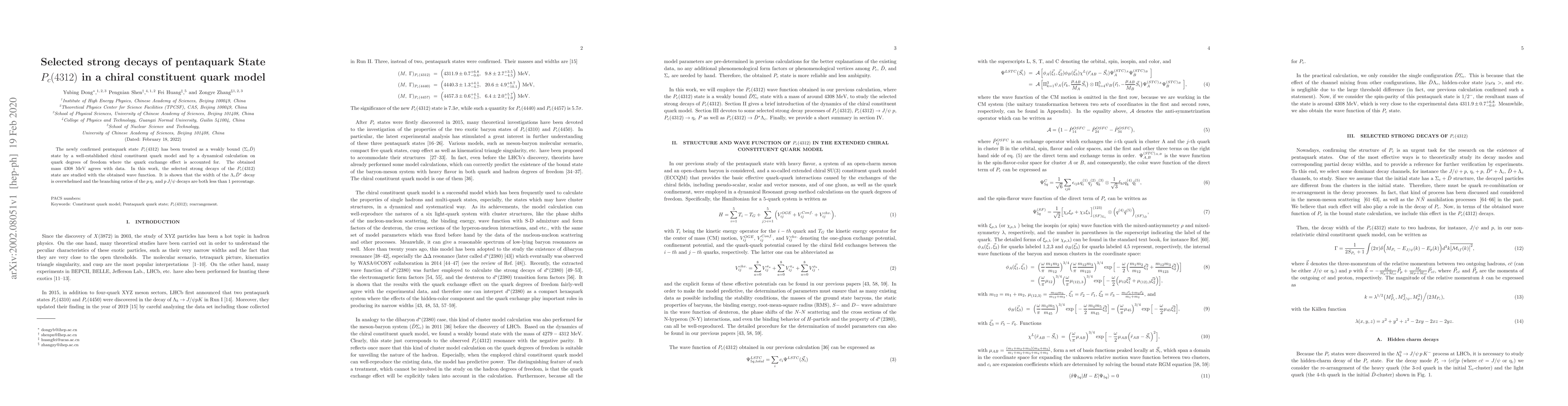 Researchers studied strong decays of the pentaquark state $P_c(4312)$ using a chiral constituent quark model, finding that only one decay mode is possible with widths less than 1%.