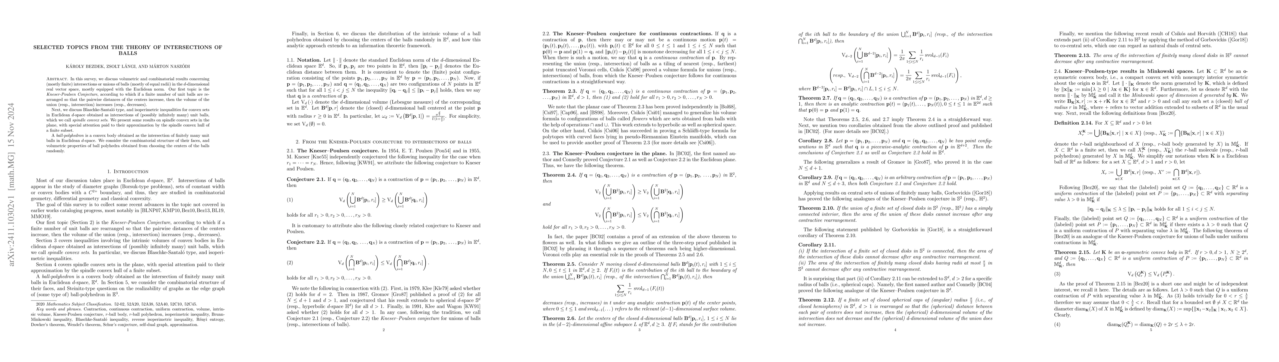 This survey explores intersections and unions of balls in $d$-dimensional Euclidean space, focusing on the Kneser-Poulsen Conjecture regarding volume changes upon rearrangement, and on spindle convex sets, including isoperimetric inequalities and volumetric properties. It also examines the combinatorial structure and random volumetric properties of ball polyhedra.