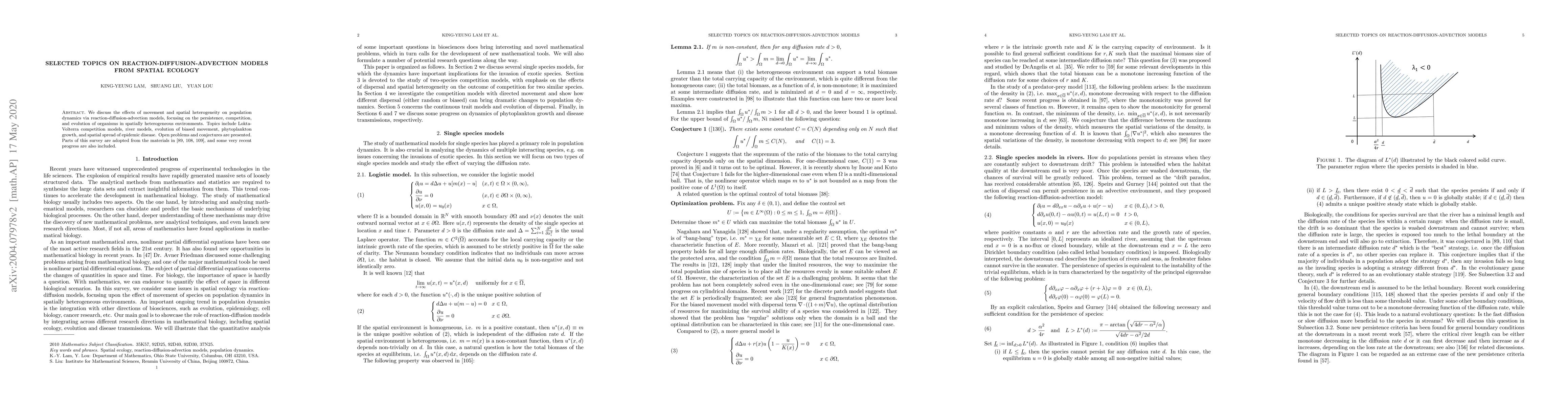 This paper explores how movement and spatial differences impact population growth using reaction-diffusion-advection models. It covers topics like competition, river ecosystems, evolution of movement patterns, phytoplankton, and disease spread, highlighting key findings, methodologies, and unresolved questions in spatial ecology.