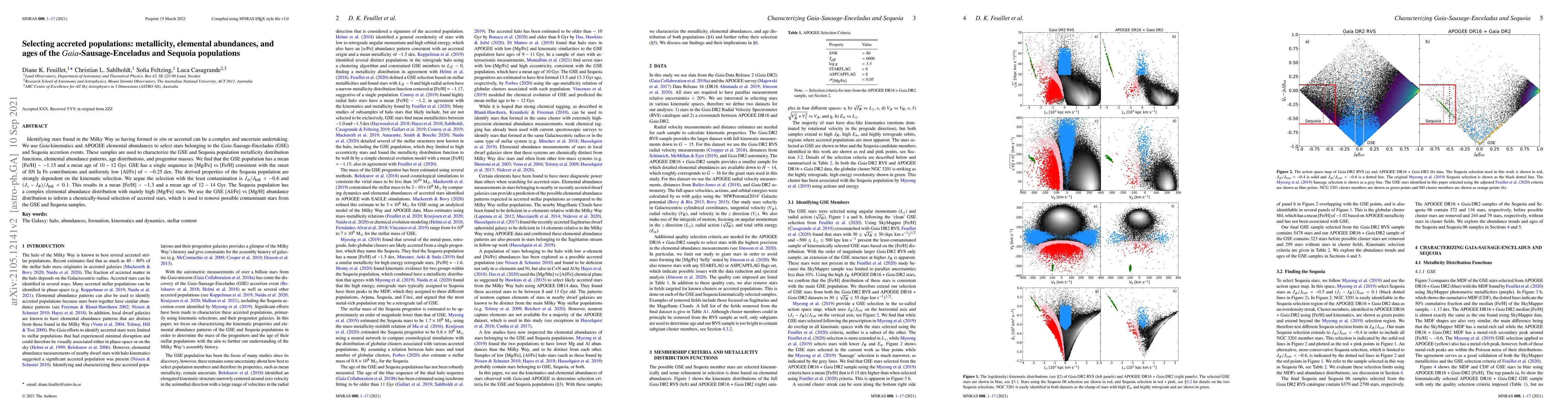 This paper identifies stars from the Gaia-Sausage-Enceladus (GSE) and Sequoia populations using Gaia kinematics and APOGEE elemental abundances, finding GSE stars have a mean [Fe/H] of -1.15 and age 10-12 Gyr, while Sequoia stars exhibit a mean [Fe/H] of -1.3 and age 12-14 Gyr, with complex elemental abundances.