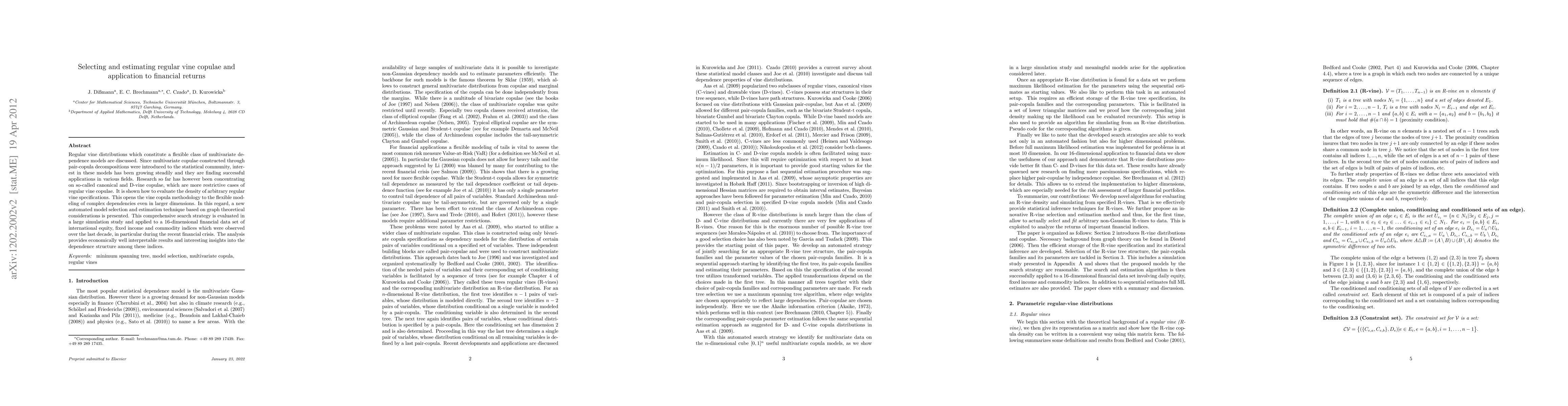 Researchers developed a method to estimate regular vine copulae for financial returns, providing insights into complex dependencies among international equity, fixed income, and commodity indices. The study demonstrates the flexibility of vine copulae in modeling multivariate relationships.