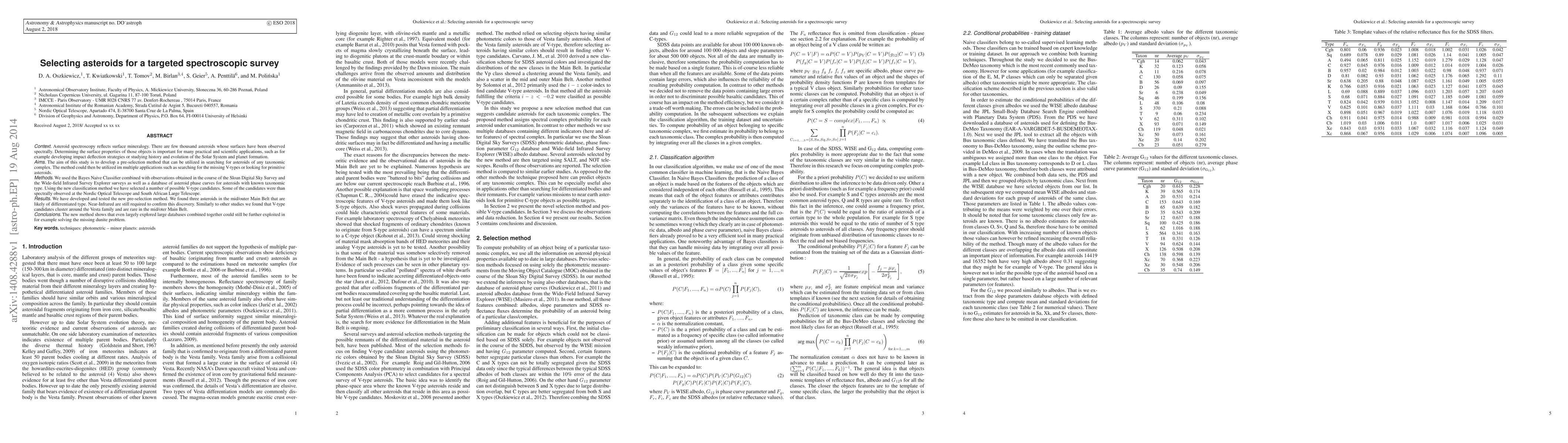 This research is significant as it presents a novel method for pre-selecting asteroids for spectroscopic surveys, which can aid in developing impact deflection strategies and understanding the history and evolution of the Solar System.