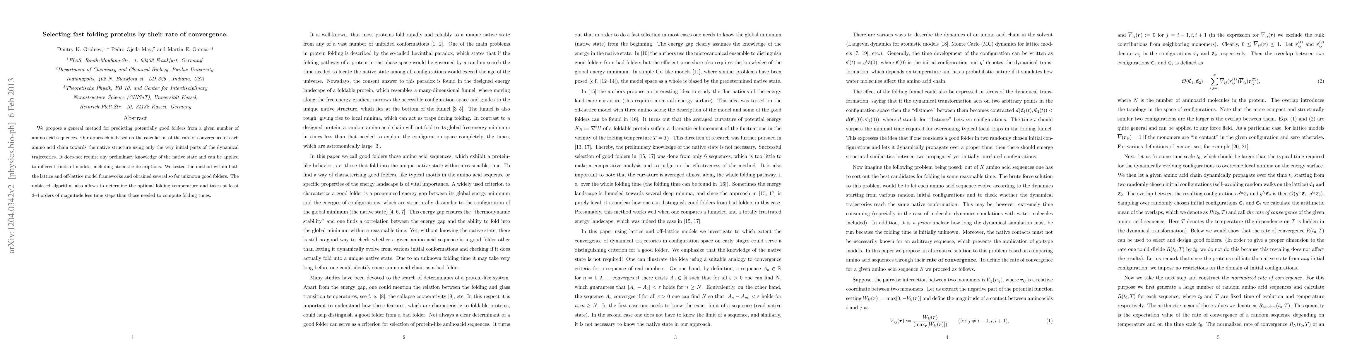 We propose a general method for predicting potentially good folders from a given number of amino acid sequences. Our approach is based on the calculation of the rate of convergence of each amino acid chain towards the native structure using only the very initial parts of the dynamical trajectories. It does not require any preliminary knowledge of the native state and can be applied to different kinds of models, including atomistic descriptions. We tested the method within both the lattice and off-lattice model frameworks and obtained several so far unknown good folders. The unbiased algorithm also allows to determine the optimal folding temperature and takes at least 3--4 orders of magnitude less time steps than those needed to compute folding times.