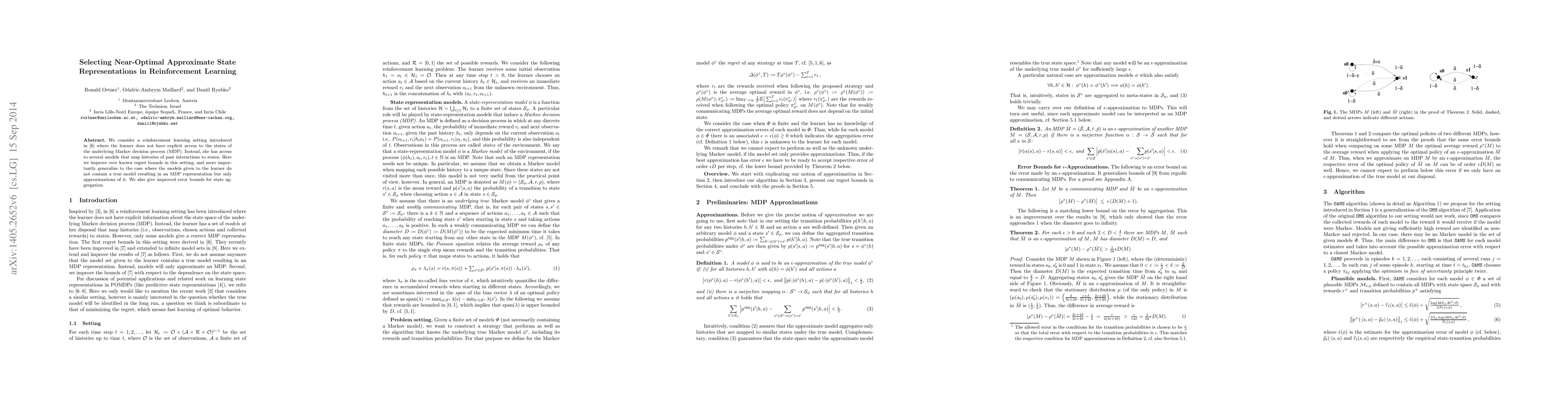 We consider a reinforcement learning setting introduced in (Maillard et al., NIPS 2011) where the learner does not have explicit access to the states of the underlying Markov decision process (MDP). Instead, she has access to several models that map histories of past interactions to states. Here we improve over known regret bounds in this setting, and more importantly generalize to the case where the models given to the learner do not contain a true model resulting in an MDP representation but only approximations of it. We also give improved error bounds for state aggregation.