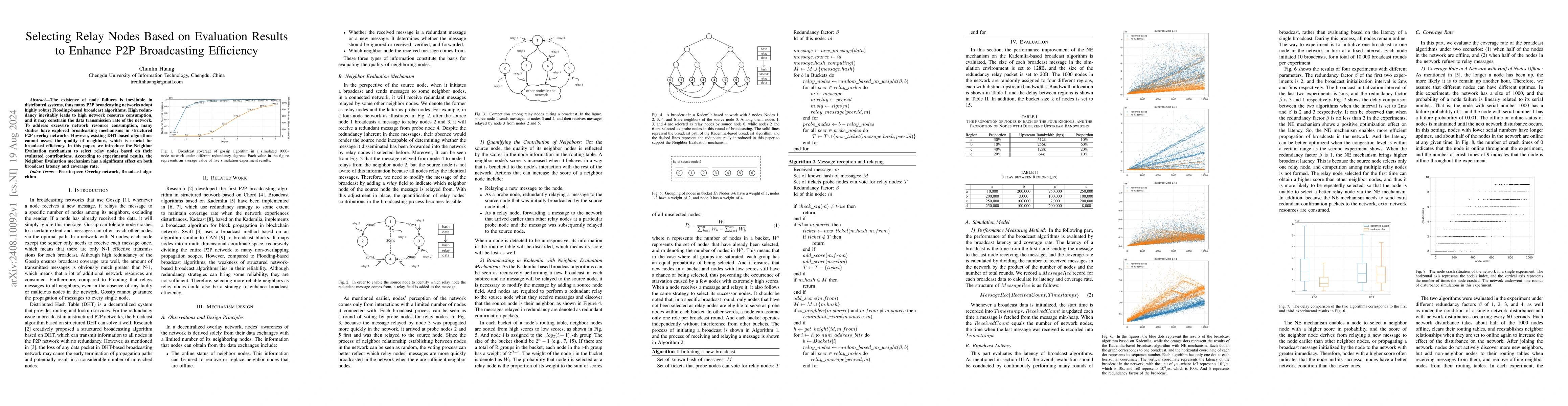 This paper proposes a Neighbor Evaluation mechanism to select relay nodes based on their contributions, aiming to enhance P2P broadcasting efficiency in structured overlay networks. Experimental results show that this mechanism significantly reduces broadcast latency and improves coverage rate by mitigating excessive network resource consumption.