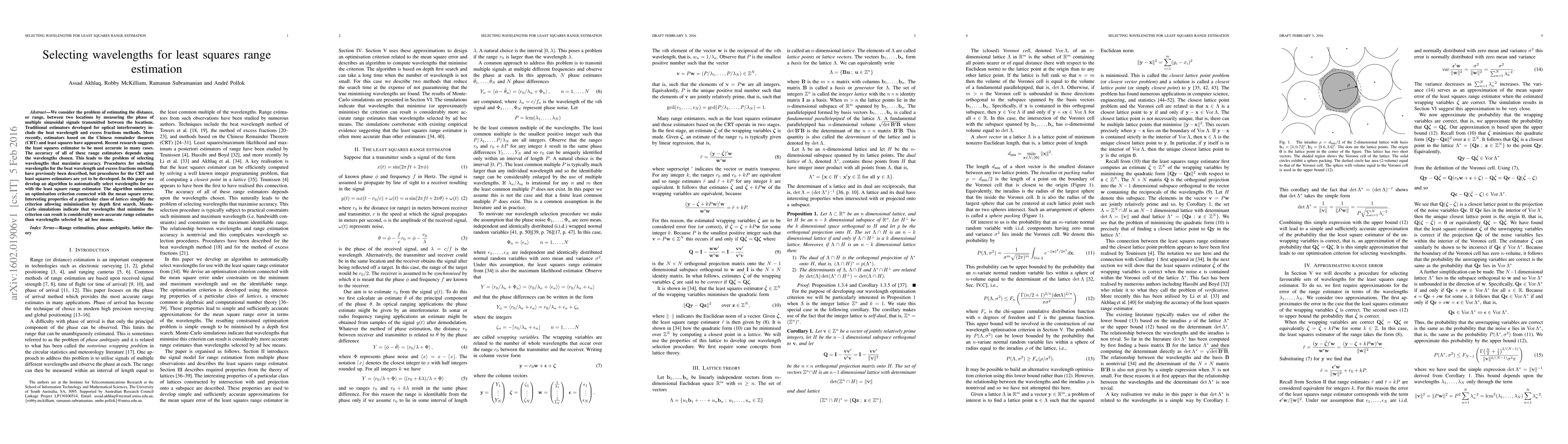 A research paper develops an algorithm to automatically select wavelengths for the least squares range estimator, which minimizes mean square error and improves accuracy in distance estimation.