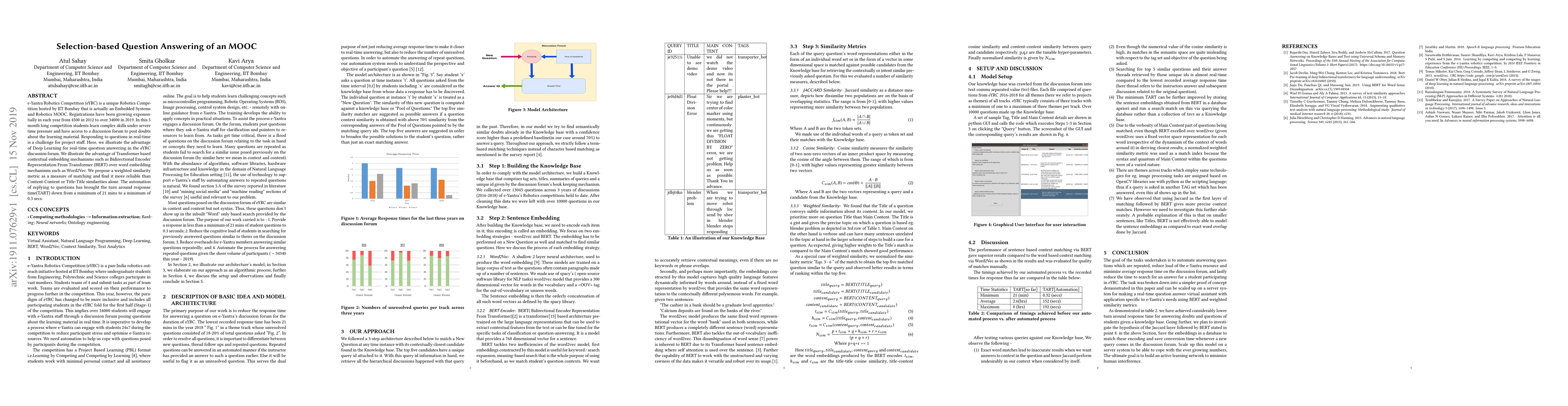 e-Yantra Robotics Competition (eYRC) is a unique Robotics Competition hosted by IIT Bombay that is actually an Embedded Systems and Robotics MOOC. Registrations have been growing exponentially in each year from 4500 in 2012 to over 34000 in 2019. In this 5-month long competition students learn complex skills under severe time pressure and have access to a discussion forum to post doubts about the learning material. Responding to questions in real-time is a challenge for project staff. Here, we illustrate the advantage of Deep Learning for real-time question answering in the eYRC discussion forum. We illustrate the advantage of Transformer based contextual embedding mechanisms such as Bidirectional Encoder Representation From Transformer (BERT) over word embedding mechanisms such as Word2Vec. We propose a weighted similarity metric as a measure of matching and find it more reliable than Content-Content or Title-Title similarities alone. The automation of replying to questions has brought the turn around response time(TART) down from a minimum of 21 mins to a minimum of 0.3 secs.