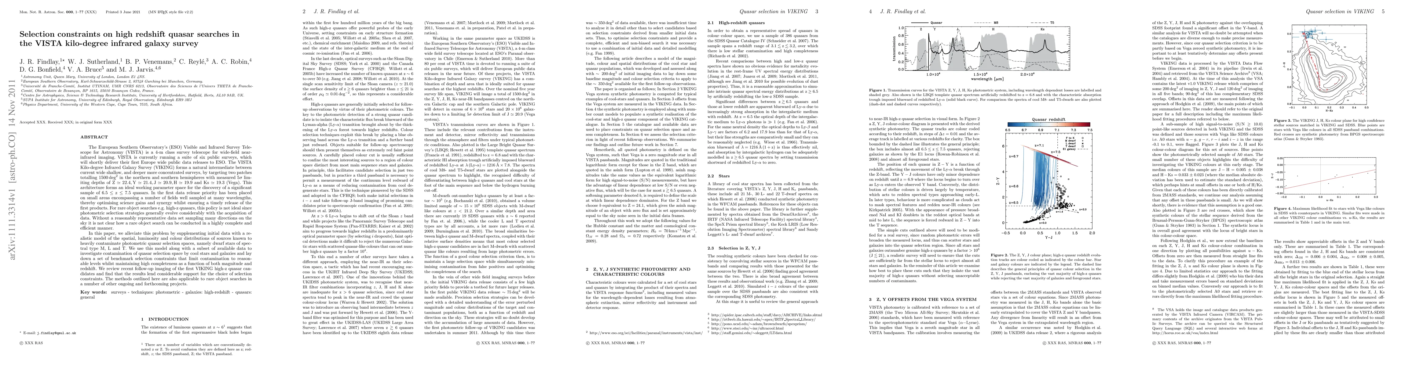 This paper discusses the challenges of identifying high-redshift quasars in the VISTA Kilo-degree Infrared Galaxy Survey (VIKING) and proposes a method to mitigate contamination from dwarf stars and galaxies. It establishes selection constraints to ensure efficient and complete quasar detection.