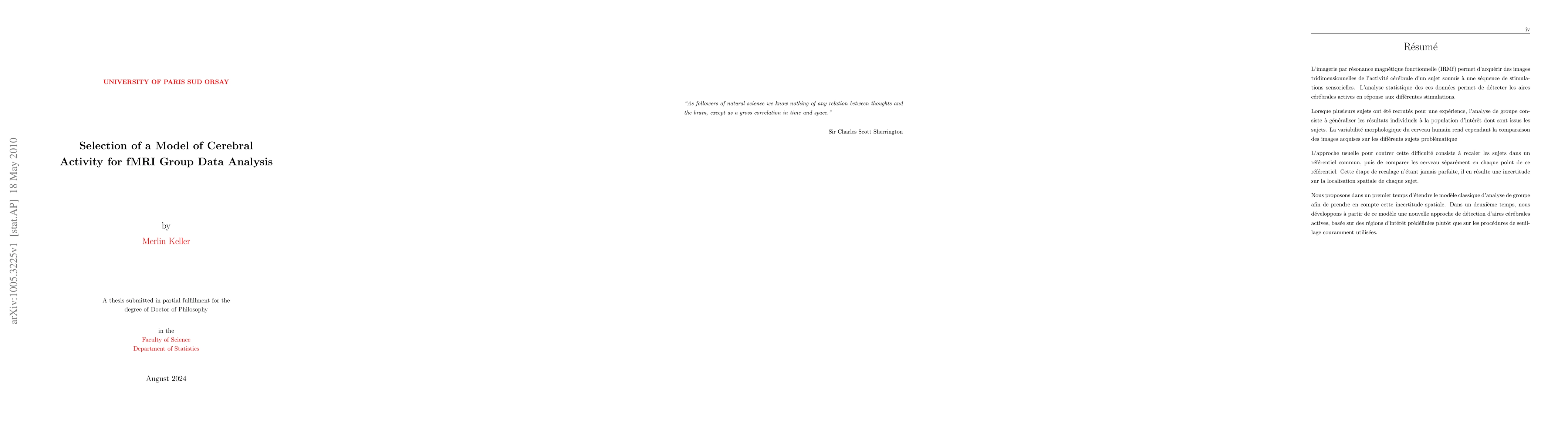This thesis is dedicated to the statistical analysis of multi-sub ject fMRI data, with the purpose of identifying bain structures involved in certain cognitive or sensori-motor tasks, in a reproducible way across sub jects. To overcome certain limitations of standard voxel-based testing methods, as implemented in the Statistical Parametric Mapping (SPM) software, we introduce a Bayesian model selection approach to this problem, meaning that the most probable model of cerebral activity given the data is selected from a pre-defined collection of possible models. Based on a parcellation of the brain volume into functionally homogeneous regions, each model corresponds to a partition of the regions into those involved in the task under study and those inactive. This allows to incorporate prior information, and avoids the dependence of the SPM-like approach on an arbitrary threshold, called the cluster- forming threshold, to define active regions. By controlling a Bayesian risk, our approach balances false positive and false negative risk control. Furthermore, it is based on a generative model that accounts for the spatial uncertainty on the localization of individual effects, due to spatial normalization errors. On both simulated and real fMRI datasets, we show that this new paradigm corrects several biases of the SPM-like approach, which either swells or misses the different active regions, depending on the choice of a cluster-forming threshold.