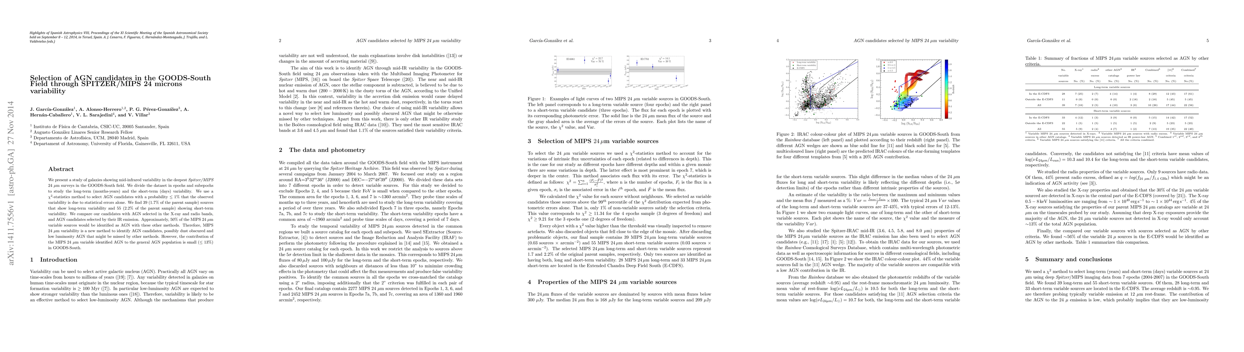 We present a study of galaxies showing mid-infrared variability in the deepest Spitzer/MIPS 24 $\mu$m surveys in the GOODS-South field. We divide the dataset in epochs and subepochs to study the long-term (months-years) and the short-term (days) variability. We use a $\chi^2$-statistics method to select AGN candidates with a probability $\leq$ 1% that the observed variability is due to statistical errors alone. We find 39 (1.7% of the parent sample) sources that show long-term variability and 55 (2.2% of the parent sample) showing short-term variability. We compare our candidates with AGN selected in the X-ray and radio bands, and AGN candidates selected by their IR emission. Approximately, 50% of the MIPS 24 $\mu$m variable sources would be identified as AGN with these other methods. Therefore, MIPS 24 $\mu$m variability is a new method to identify AGN candidates, possibly dust obscured and low luminosity AGN that might be missed by other methods. However, the contribution of the MIPS 24 $\mu$m variable identified AGN to the general AGN population is small ($\leq$ 13%) in GOODS-South.