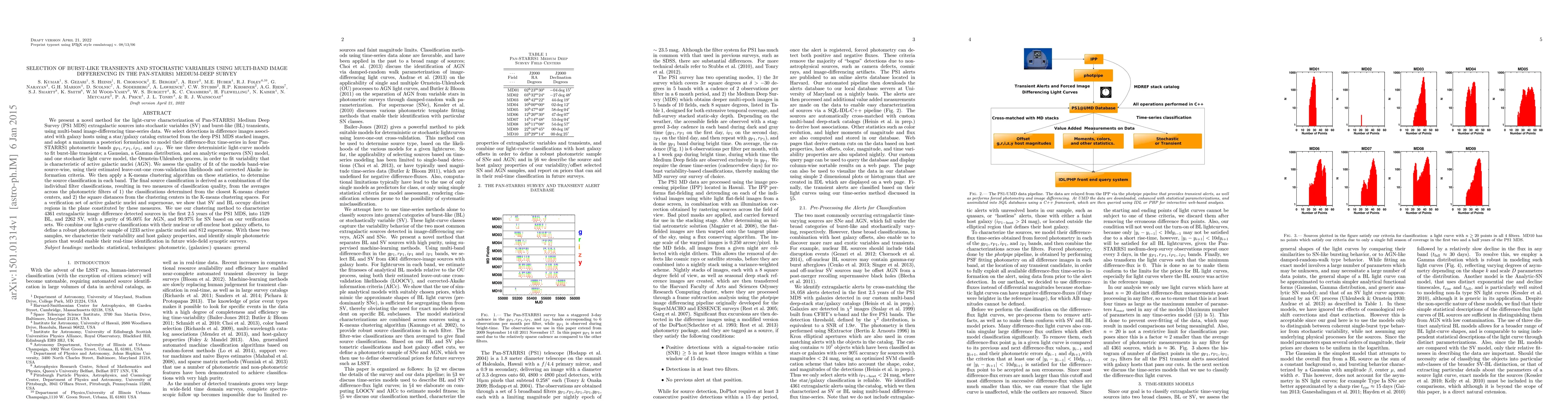 This paper introduces a method for classifying extragalactic sources in the Pan-STARRS1 Medium Deep Survey into burst-like transients and stochastic variables using multi-band image differencing. The method combines light-curve modeling and K-means clustering to achieve a 95% purity classification of active galactic nuclei and 91% for supernovae, enabling real-time identification in future surveys.