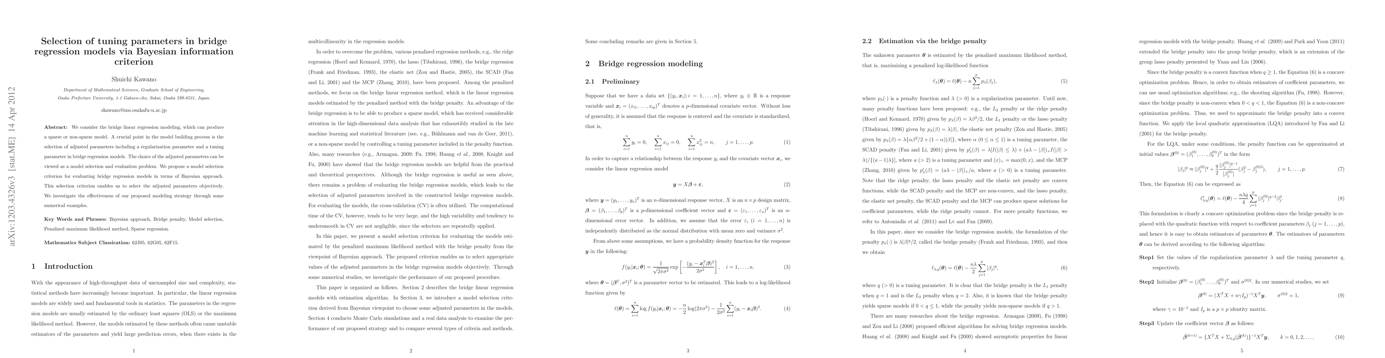This paper proposes a Bayesian information criterion for selecting tuning parameters in bridge regression models, which helps in choosing regularization and tuning parameters objectively. The effectiveness of the proposed model selection strategy is demonstrated through numerical examples.