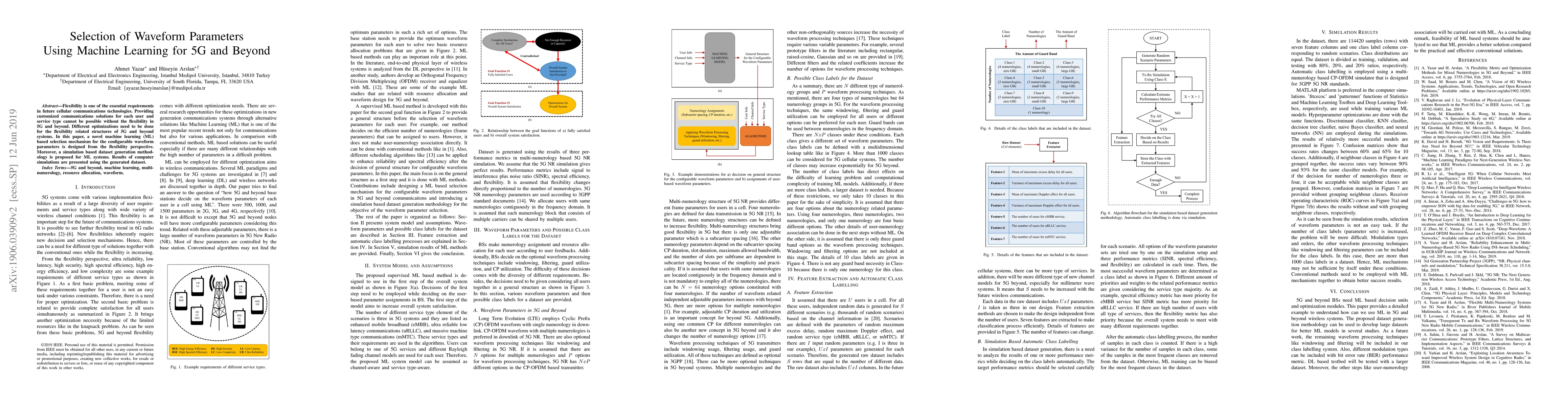 This paper proposes a machine learning-based mechanism for selecting optimal waveform parameters in 5G and future cellular technologies to enhance flexibility. It also introduces a simulation-based dataset for training ML models, demonstrating its effectiveness through simulation results.