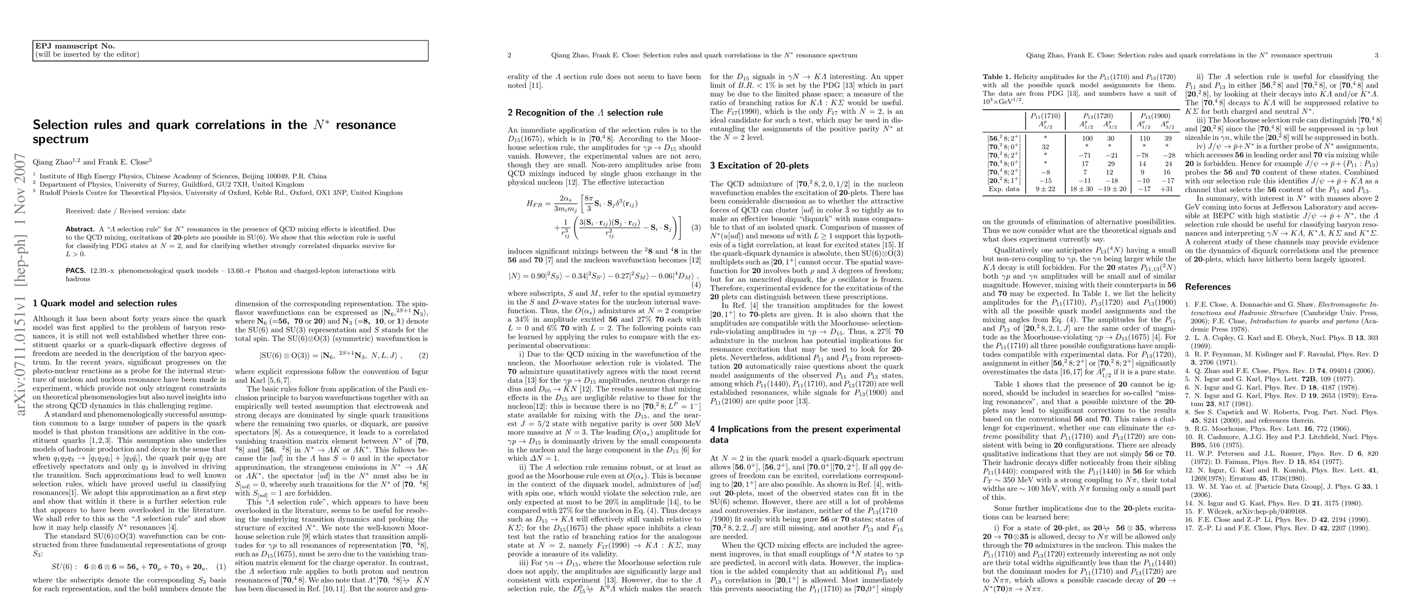 A "$\Lambda$ selection rule" for $N^*$ resonances in the presence of QCD mixing effects is identified. Due to the QCD mixing, excitations of {\bf 20}-plets are possible in SU(6). We show that this selection rule is useful for classifying PDG states at N=2, and for clarifying whether strongly correlated diquarks survive for $L > 0$.