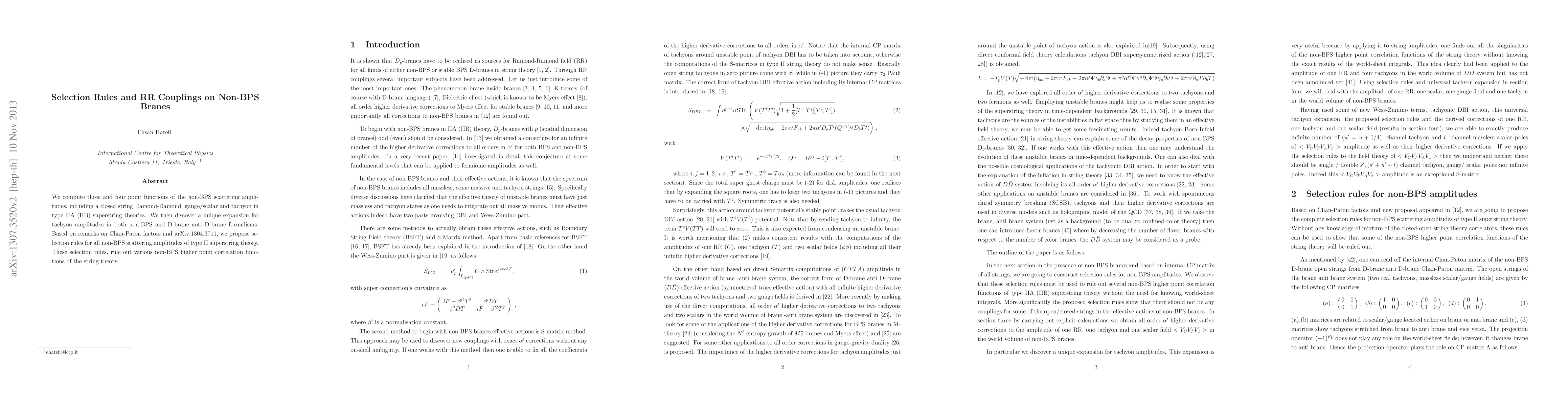 We compute three and four point functions of the non-BPS scattering amplitudes, including a closed string Ramond-Ramond, gauge/scalar and tachyon in type IIA (IIB) superstring theories. We then discover a unique expansion for tachyon amplitudes in both non-BPS and D-brane anti D-brane formalisms. Based on remarks on Chan-Paton factors and arXiv:1304.3711, we propose selection rules for all non-BPS scattering amplitudes of type II superstring theory. These selection rules, rule out various non-BPS higher point correlation functions of the string theory.