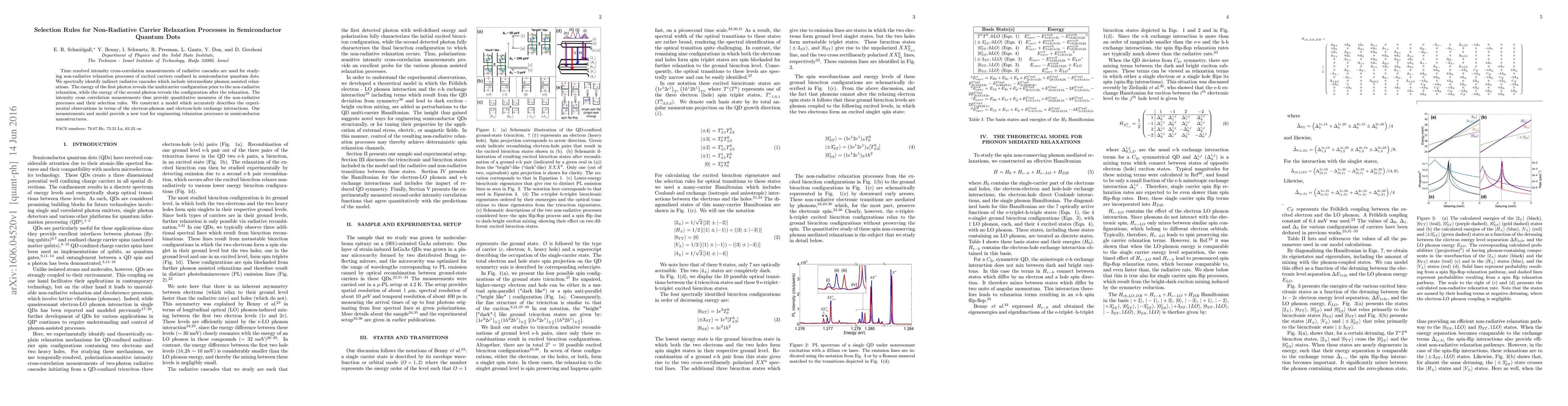 This paper investigates non-radiative relaxation processes in semiconductor quantum dots using time-resolved intensity cross-correlation measurements. The study identifies indirect radiative cascades involving phonon-assisted relaxations, providing quantitative measures of these processes and their selection rules, and proposes a model based on electron-phonon and electron-hole interactions.