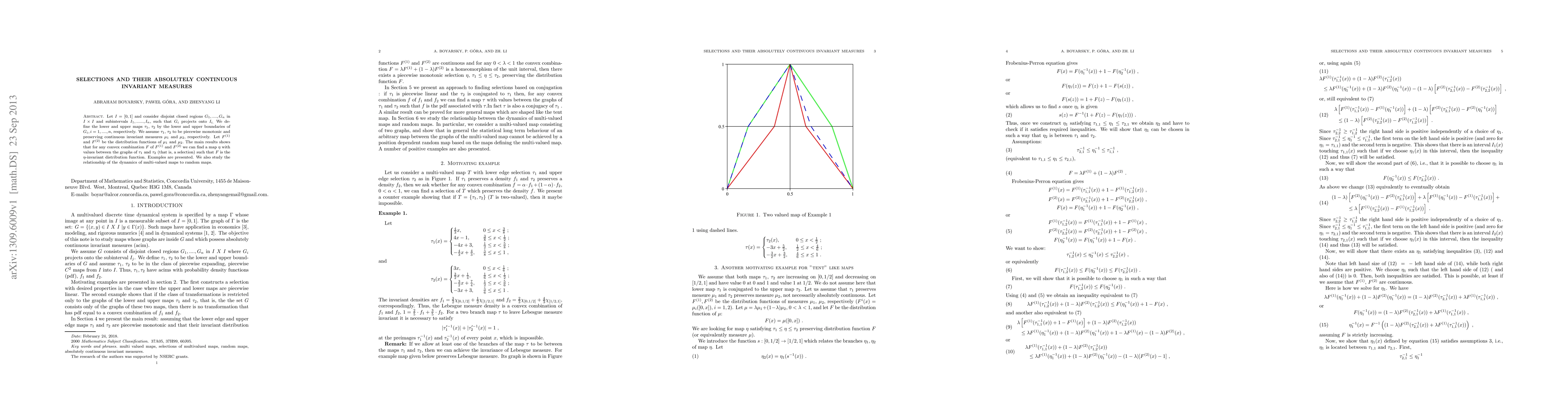 Let $I=[0,1]$ and consider disjoint closed regions $G_{1},....,G_{n}$ in $% I\times I$ and subintervals $I_{1},......,I_{n},$ such that $G_{i}$ projects onto $I_{i.}$ We define the lower and upper maps $\tau_{1},$ $\tau_{2}$ by the lower and upper boundaries of $G_{i},i=1,....,n,$ respectively. We assume $\tau_{1}$, $\tau_{2}$ to be piecewise monotonic and preserving continuous invariant measures $\mu_{1}$ and $\mu_{2}$, respectively. Let $% F^{(1)}$ and $F^{(2)}$ be the distribution functions of $\mu_{1}$ and $\mu_{2}.$ The main results shows that for any convex combination $F$ of $% F^{(1)} $ and $F^{(2)}$ we can find a map $\eta $ with values between the graphs of $\tau_{1}$ and $\tau_{2}$ (that is, a selection) such that $F$ is the $\eta $-invariant distribution function. Examples are presented. We also study the relationship of the dynamics of multi-valued maps to random maps.
