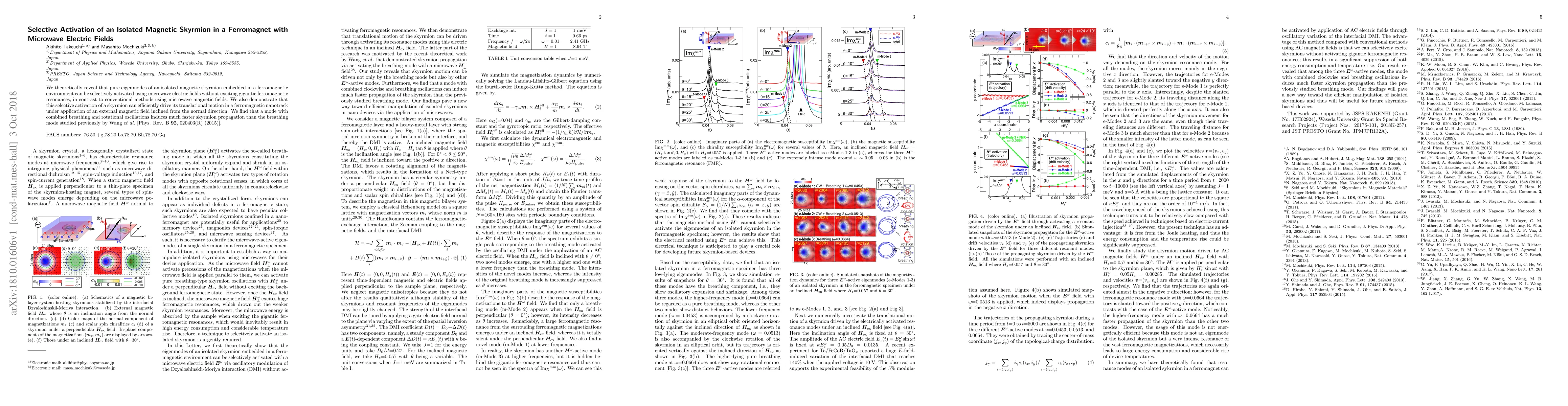 This paper demonstrates that isolated magnetic skyrmions can be selectively activated using microwave electric fields, avoiding the excitation of ferromagnetic resonances typically caused by magnetic fields. This selective activation efficiently drives skyrmion motion in a nanotrack, with combined breathing and rotational oscillations inducing faster propagation compared to previous methods.
