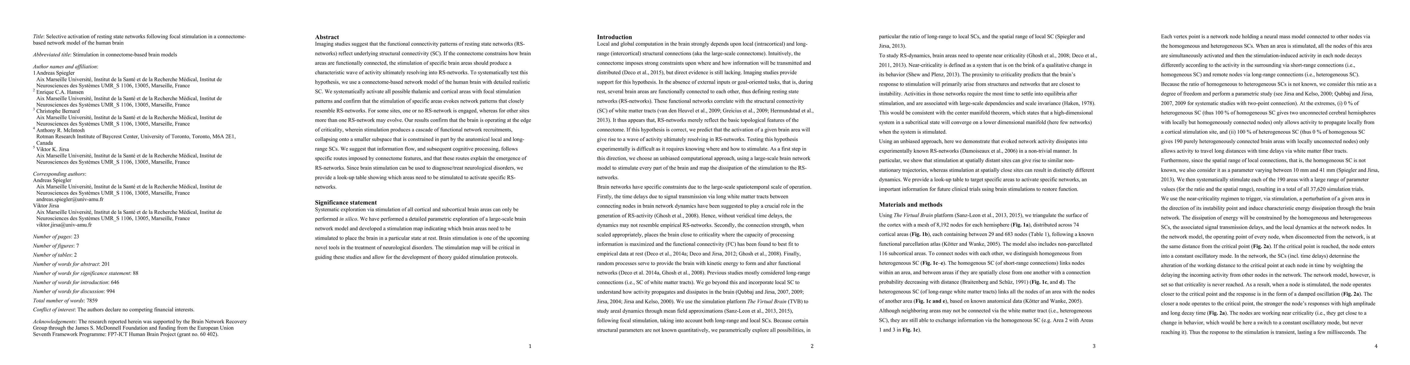 This study uses a connectome-based network model to demonstrate that focal stimulation of specific brain areas activates characteristic resting state networks, suggesting that the brain operates at a critical state where stimulation induces a cascade of functional network recruitments constrained by anatomical connectivity. The findings propose that connectome features dictate information flow and cognitive processing routes, and provide a guide for targeting specific networks via brain stimulation.