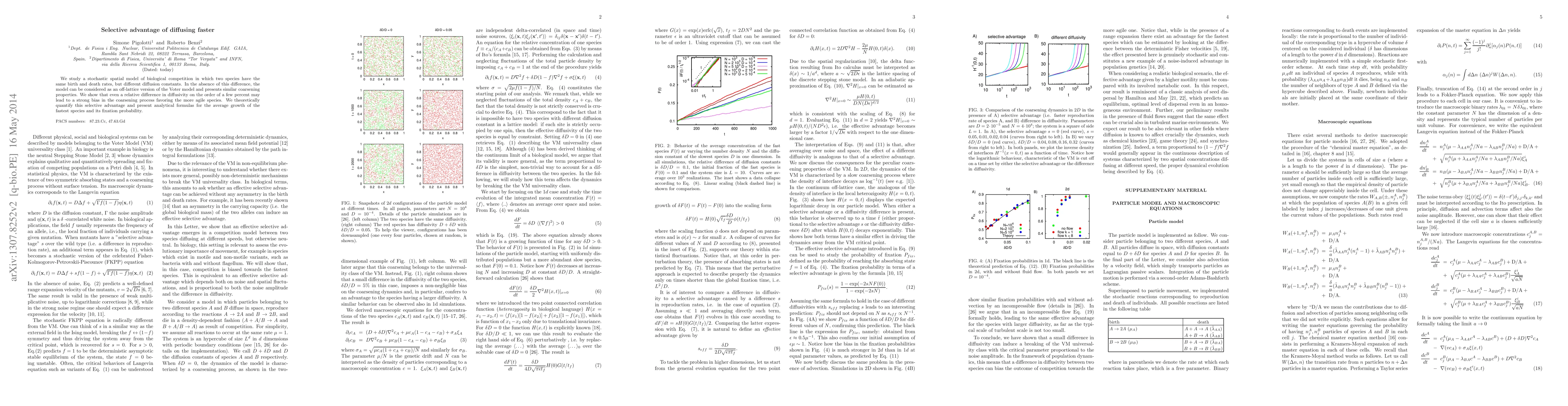 A study found that even small differences in speed can give a species an advantage in a competition model, favoring the faster species' growth and fixation. A few percent difference in diffusivity is enough to create this selective bias.
