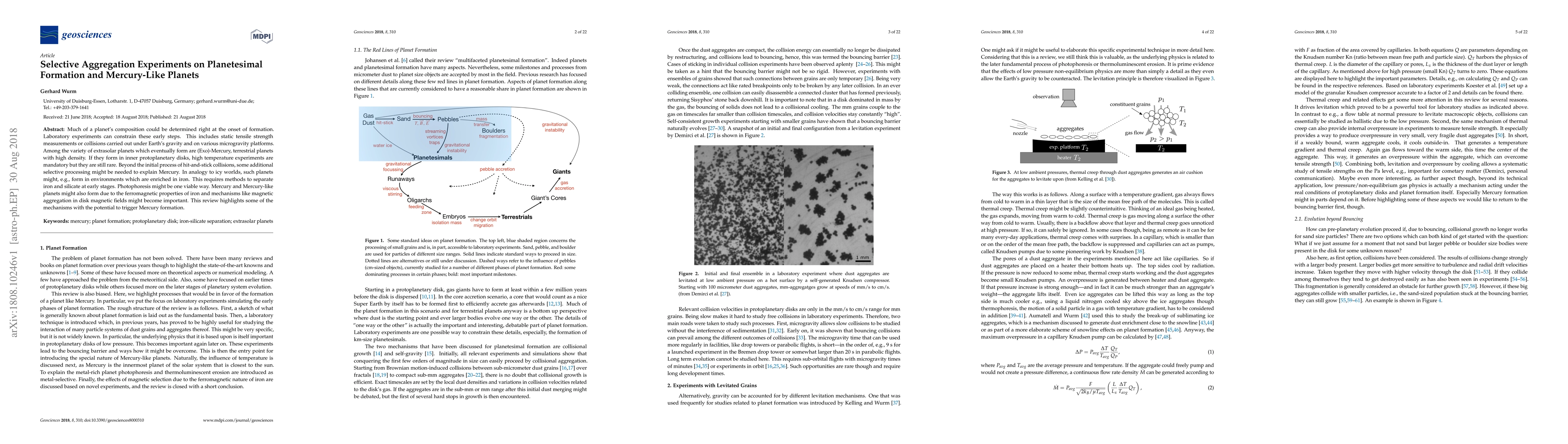 Much of a planet's composition could be determined right at the onset of formation. Laboratory experiments can constrain these early steps. This includes static tensile strength measurements or collisions carried out under Earth's gravity and on various microgravity platforms. Among the variety of extrasolar planets which eventually form are (Exo)-Mercury, terrestrial planets with high density. If they form in inner protoplanetary disks, high temperature experiments are mandatory but they are still rare. Beyond the initial process of hit-and-stick collisions, some additional selective processing might be needed to explain Mercury. In analogy to icy worlds, such planets might, e.g., form in environments which are enriched in iron. This requires methods to separate iron and silicate at early stages. Photophoresis might be one viable way. Mercury and Mercury-like planets might also form due to the ferromagnetic properties of iron and mechanisms like magnetic aggregation in disk magnetic fields might become important. This review highlights some of the mechanisms with the potential to trigger Mercury formation.