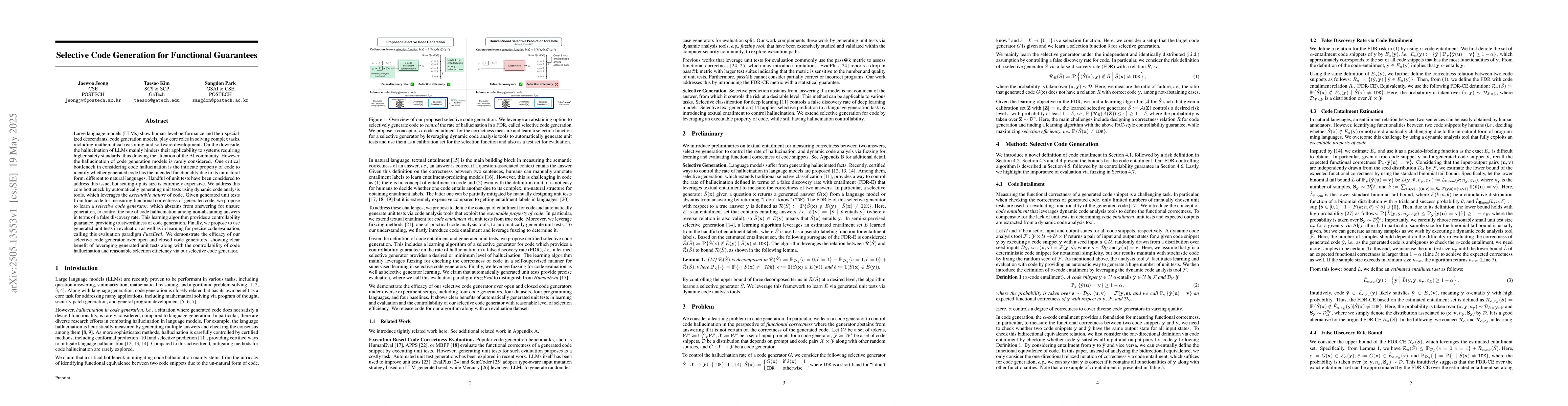 This work stands out by directly tackling code hallucination in generation models through a selective generation approach and introducing FuzzEval, a novel evaluation method utilizing dynamically generated unit tests.