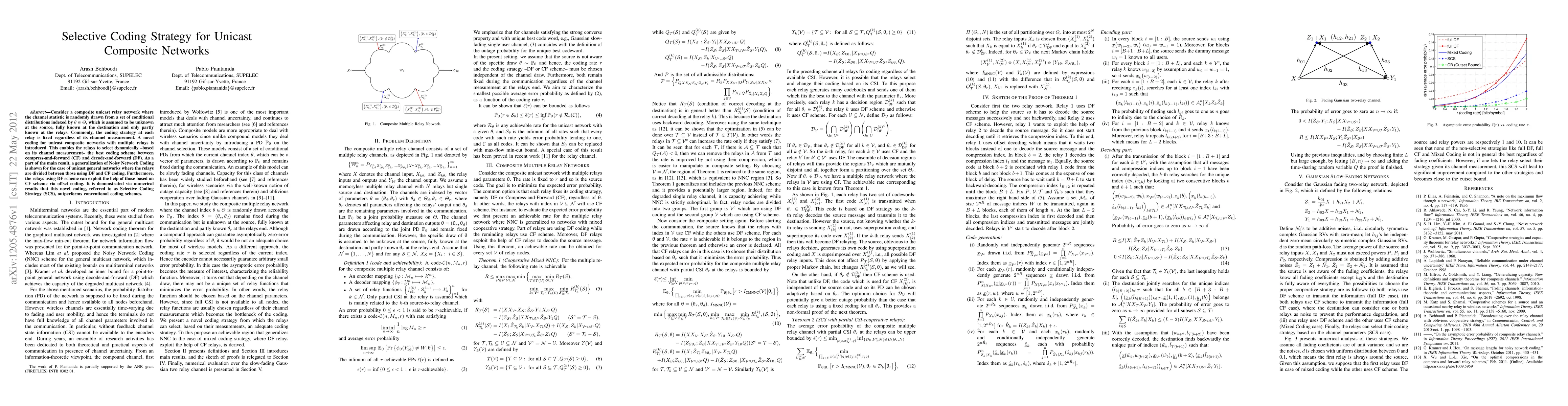 Consider a composite unicast relay network where the channel statistic is randomly drawn from a set of conditional distributions indexed by a random variable, which is assumed to be unknown at the source, fully known at the destination and only partly known at the relays. Commonly, the coding strategy at each relay is fixed regardless of its channel measurement. A novel coding for unicast composite networks with multiple relays is introduced. This enables the relays to select dynamically --based on its channel measurement-- the best coding scheme between compress-and-forward (CF) and decode-and-forward (DF). As a part of the main result, a generalization of Noisy Network Coding is shown for the case of unicast general networks where the relays are divided between those using DF and CF coding. Furthermore, the relays using DF scheme can exploit the help of those based on CF scheme via offset coding. It is demonstrated via numerical results that this novel coding, referred to as Selective Coding Strategy (SCS), outperforms conventional coding schemes.