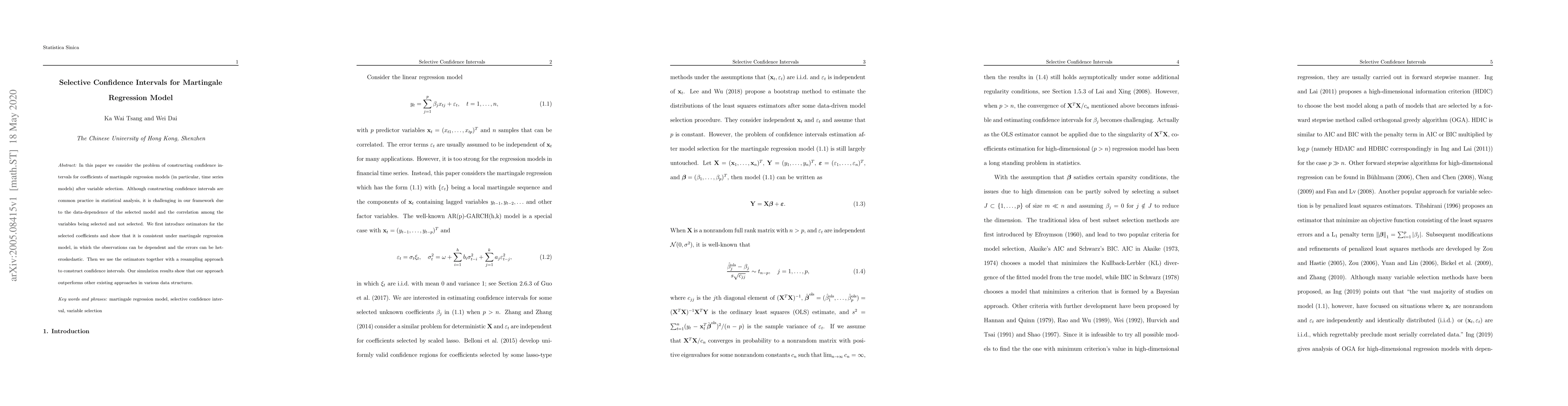 This paper develops a method for constructing selective confidence intervals for coefficients in martingale regression models following variable selection, addressing challenges due to data-dependence and variable correlations. It introduces consistent estimators and a resampling approach, demonstrating superior performance in simulations compared to existing methods.