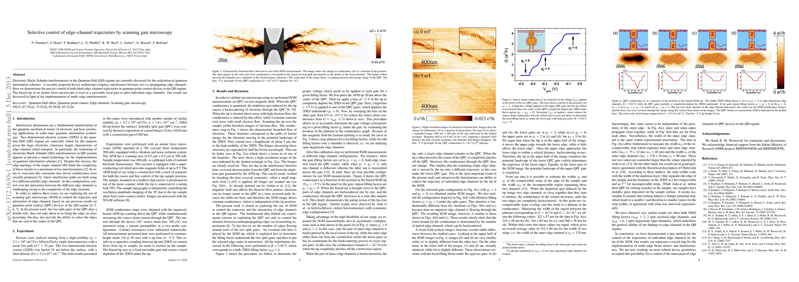 Electronic Mach-Zehnder interferometers in the Quantum Hall (QH) regime are currently discussed for the realization of quantum information schemes. A recently proposed device architecture employs interference between two co-propagating edge channels. Here we demonstrate the precise control of individual edge-channel trajectories in quantum point contact devices in the QH regime. The biased tip of an atomic force microscope is used as a moveable local gate to pilot individual edge channels. Our results are discussed in light of the implementation of multi-edge interferometers.