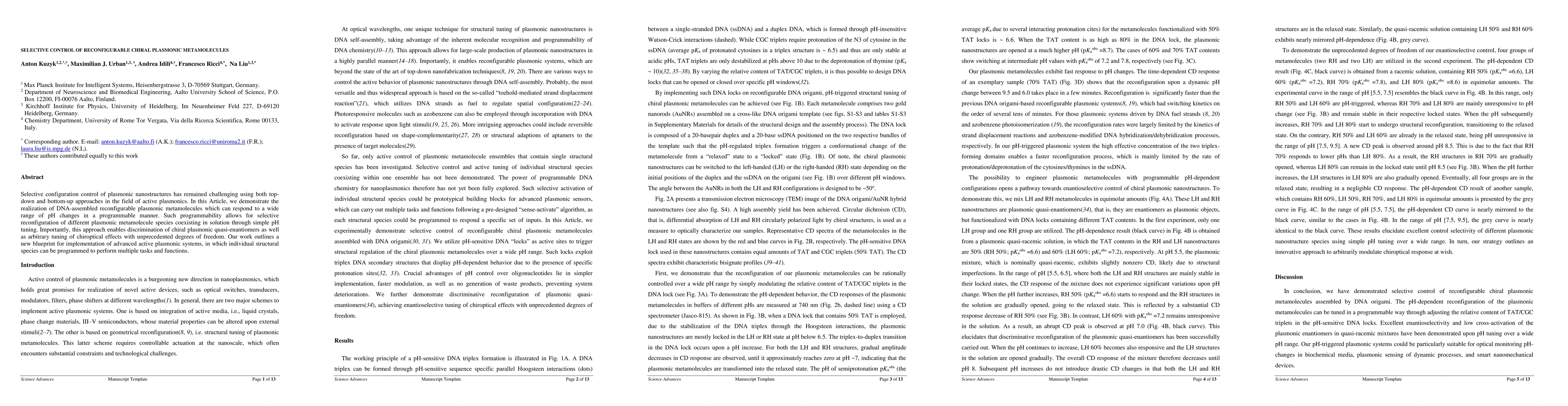 The development of a novel class of pH-sensitive plasmonic chiral metamolecules with enantioselective control, enabled by the use of DNA locks with different TAT/CGC contents.