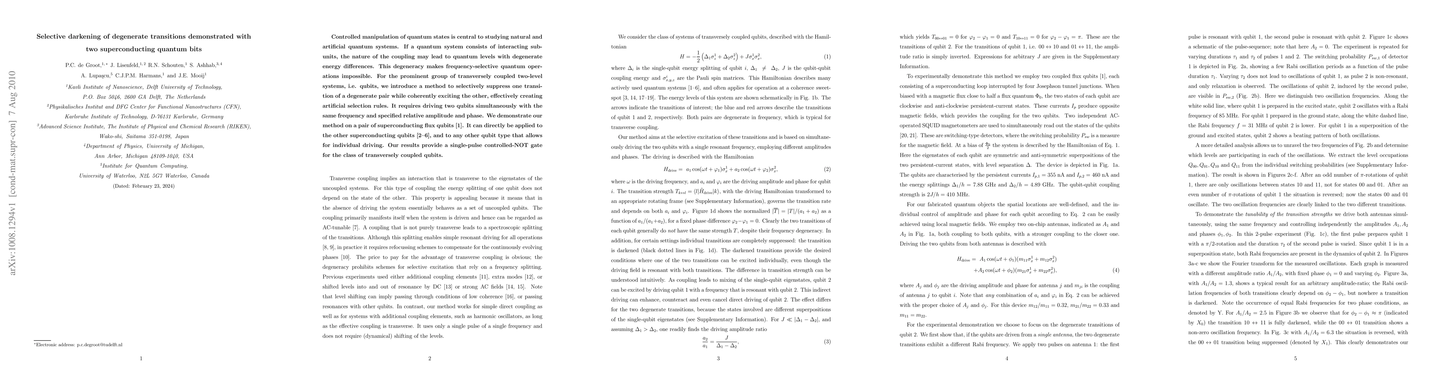 Controlled manipulation of quantum states is central to studying natural and artificial quantum systems. If a quantum system consists of interacting sub-units, the nature of the coupling may lead to quantum levels with degenerate energy differences. This degeneracy makes frequency-selective quantum operations impossible. For the prominent group of transversely coupled two-level systems, i.e. qubits, we introduce a method to selectively suppress one transition of a degenerate pair while coherently exciting the other, effectively creating artificial selection rules. It requires driving two qubits simultaneously with the same frequency and specified relative amplitude and phase. We demonstrate our method on a pair of superconducting flux qubits. It can directly be applied to the other superconducting qubits, and to any other qubit type that allows for individual driving. Our results provide a single-pulse controlled-NOT gate for the class of transversely coupled qubits.
