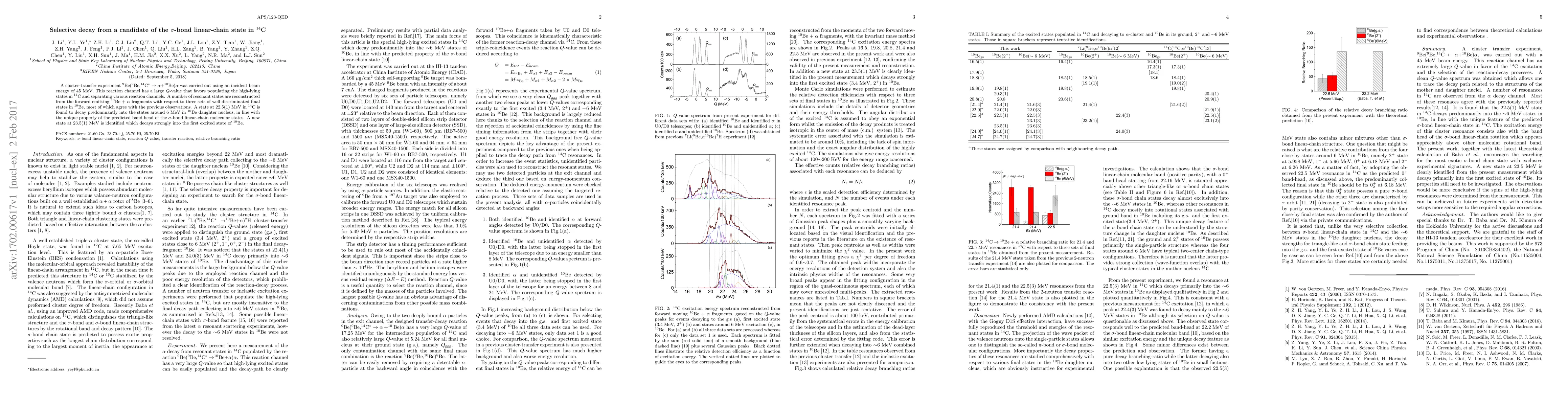 Researchers studied the reaction of $^{14}$C with a beam of $^9$Be and discovered two new resonant states in $^{14}$C that exhibit unique decay patterns, providing evidence for the existence of $ heta$-bond linear-chain molecular states.
