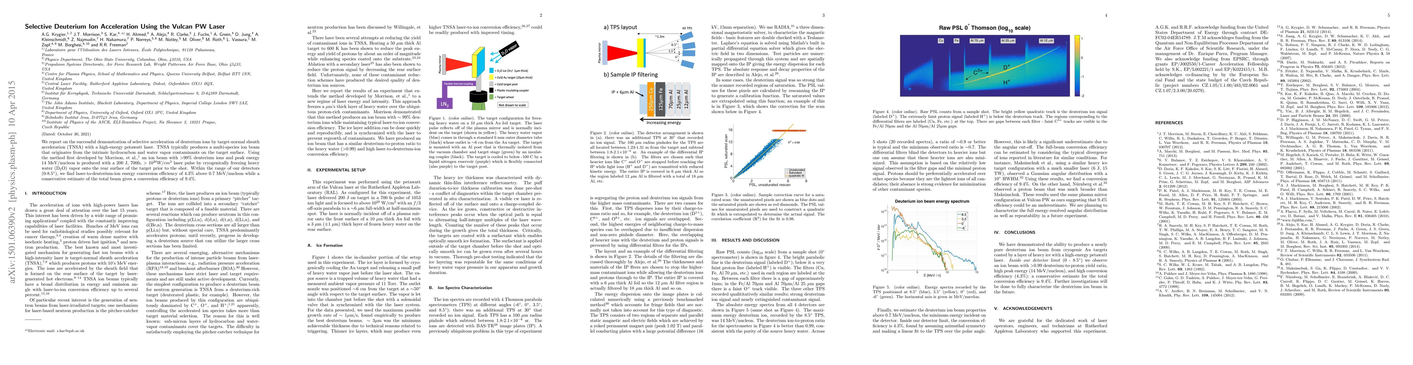 This paper demonstrates selective acceleration of deuterium ions via target-normal sheath acceleration using a high-energy petawatt laser, achieving a >99% deuterium ion beam with a peak energy of 14 MeV/nucleon by cryogenically freezing heavy water vapor onto the target. The laser-to-deuterium-ion energy conversion efficiency is reported to be 4.3% above 0.7 MeV/nucleon.