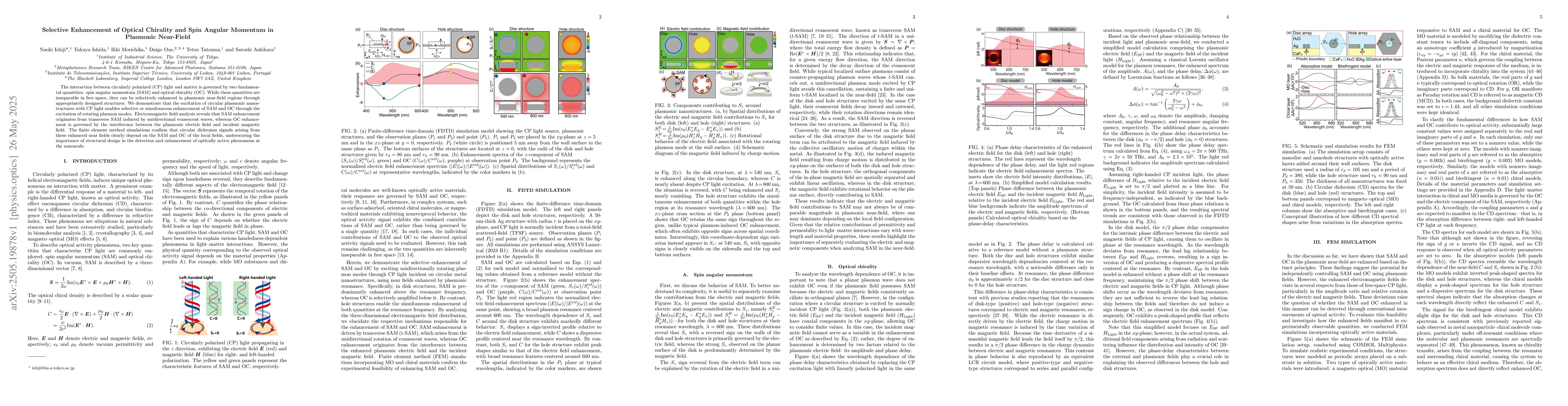 The paper presents a detailed analysis of how circular plasmonic nanostructures can selectively enhance SAM and OC, providing insights into near-field optics.