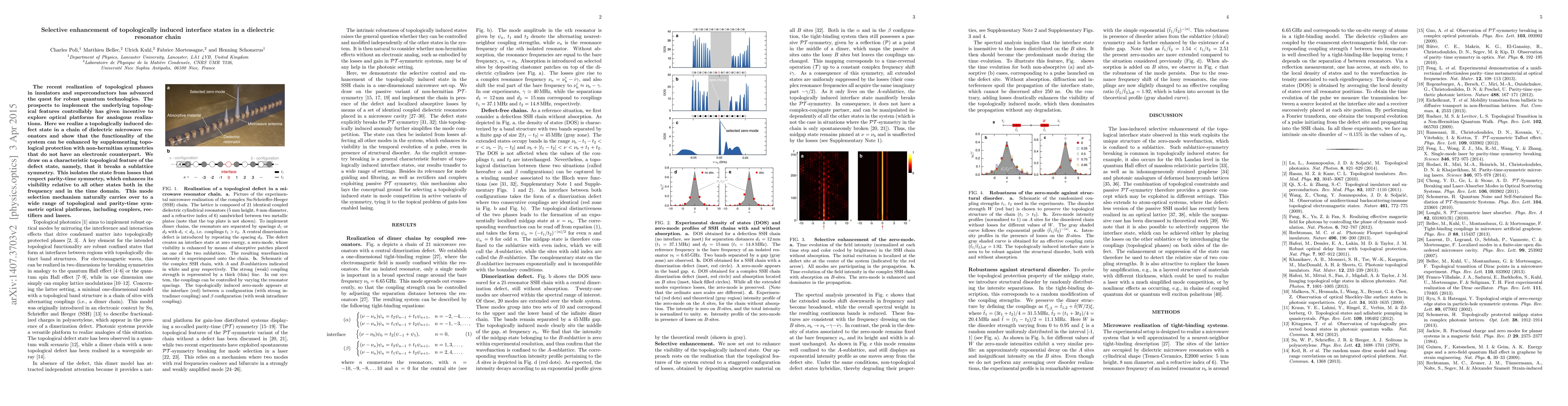 The recent realization of topological phases in insulators and superconductors has advanced the quest for robust quantum technologies. The prospects to implement the underlying topological features controllably has given incentive to explore optical platforms for analogous realizations. Here we realize a topologically induced defect state in a chain of dielectric microwave resonators and show that the functionality of the system can be enhanced by supplementing topological protection with non-hermitian symmetries that do not have an electronic counterpart. We draw on a characteristic topological feature of the defect state, namely, that it breaks a sublattice symmetry. This isolates the state from losses that respect parity-time symmetry, which enhances its visibility relative to all other states both in the frequency and in the time domain. This mode selection mechanism naturally carries over to a wide range of topological and parity-time symmetric optical platforms, including couplers, rectifiers and lasers.