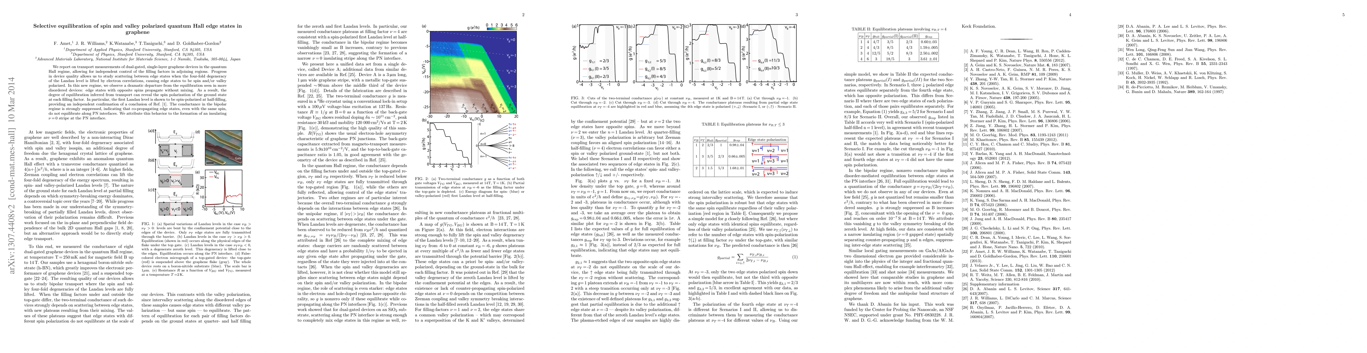 This study demonstrates selective equilibration of spin and valley polarized quantum Hall edge states in graphene, showing that edge states with opposite spins do not mix, and revealing spin polarization in the first Landau level at half-filling, supported by suppressed conductance in bipolar regimes due to an insulating nu=0 stripe at PN interfaces.