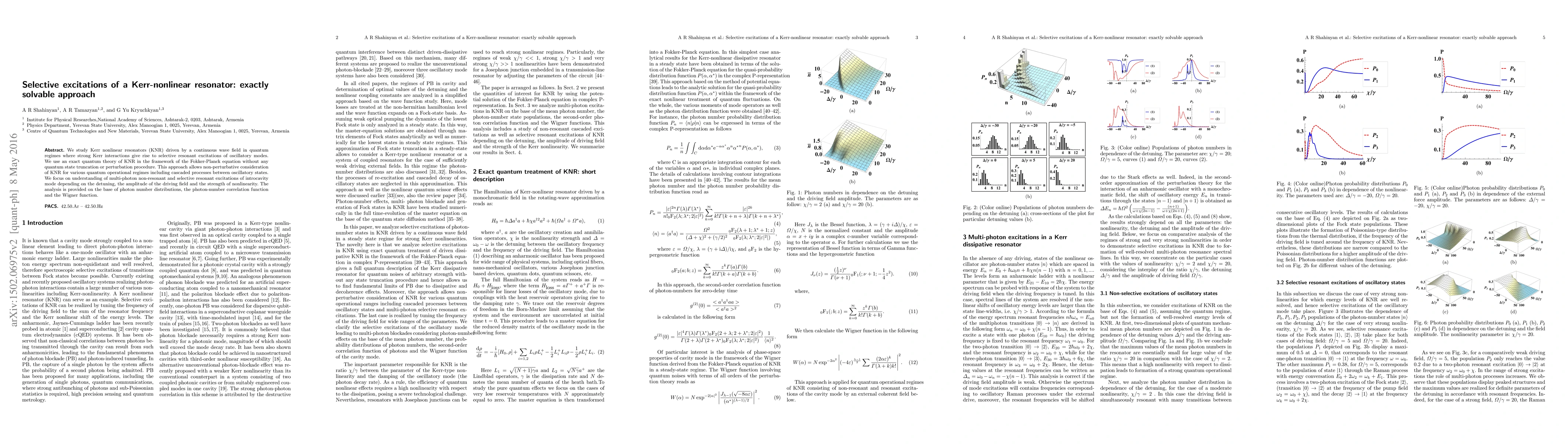 This paper presents an exact quantum theory for Kerr nonlinear resonators driven by a continuous wave, focusing on selective resonant excitations of oscillatory modes. The study employs the Fokker-Planck equation to analyze multi-photon processes without truncation or perturbation, examining photon distributions, correlations, and the Wigner function.