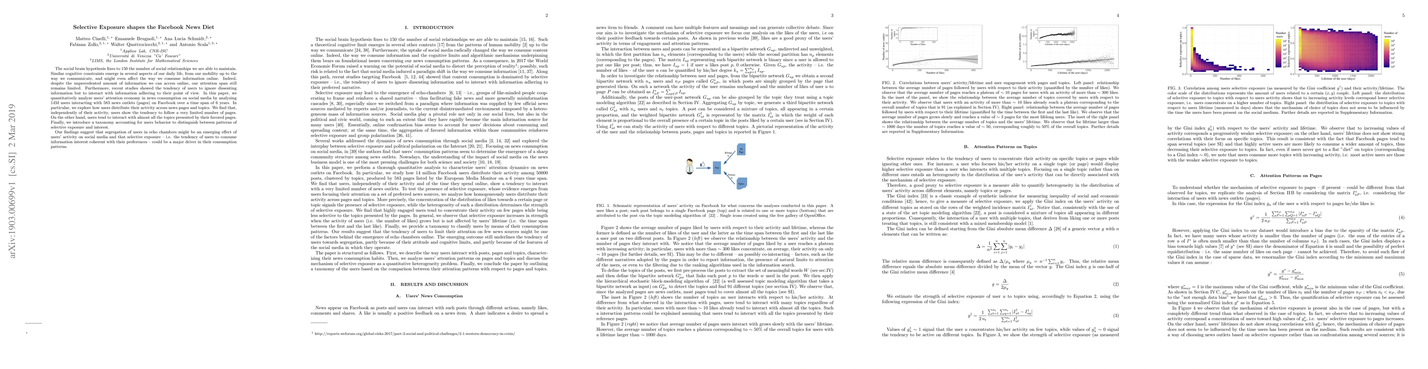 The social brain hypothesis fixes to 150 the number of social relationships we are able to maintain. Similar cognitive constraints emerge in several aspects of our daily life, from our mobility up to the way we communicate, and might even affect the way we consume information online. Indeed, despite the unprecedented amount of information we can access online, our attention span still remains limited. Furthermore, recent studies showed the tendency of users to ignore dissenting information but to interact with information adhering to their point of view. In this paper, we quantitatively analyze users' attention economy in news consumption on social media by analyzing 14M users interacting with 583 news outlets (pages) on Facebook over a time span of 6 years. In particular, we explore how users distribute their activity across news pages and topics. We find that, independently of their activity, users show the tendency to follow a very limited number of pages. On the other hand, users tend to interact with almost all the topics presented by their favored pages. Finally, we introduce a taxonomy accounting for users behavior to distinguish between patterns of selective exposure and interest. Our findings suggest that segregation of users in echo chambers might be an emerging effect of users' activity on social media and that selective exposure -- i.e. the tendency of users to consume information interest coherent with their preferences -- could be a major driver in their consumption patterns.