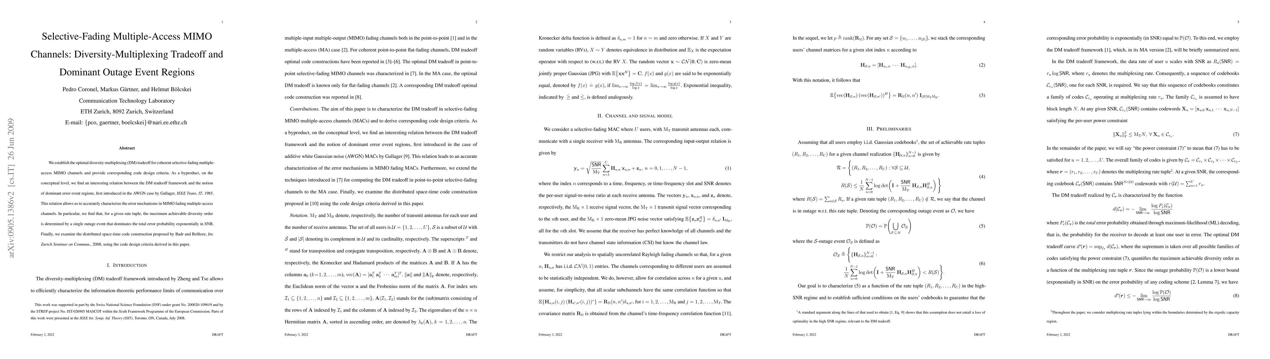 This research contributes to our understanding of the diversity-multiplexing tradeoff in selective-fading MIMO channels and its implications for code design