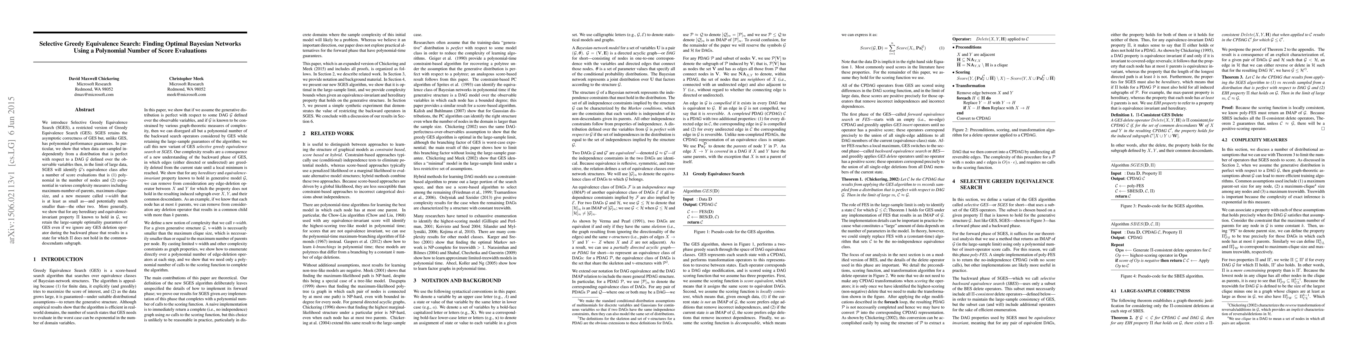 Researchers introduce SGES, a polynomial performance version of Greedy Equivalence Search that efficiently identifies optimal Bayesian networks with large datasets.