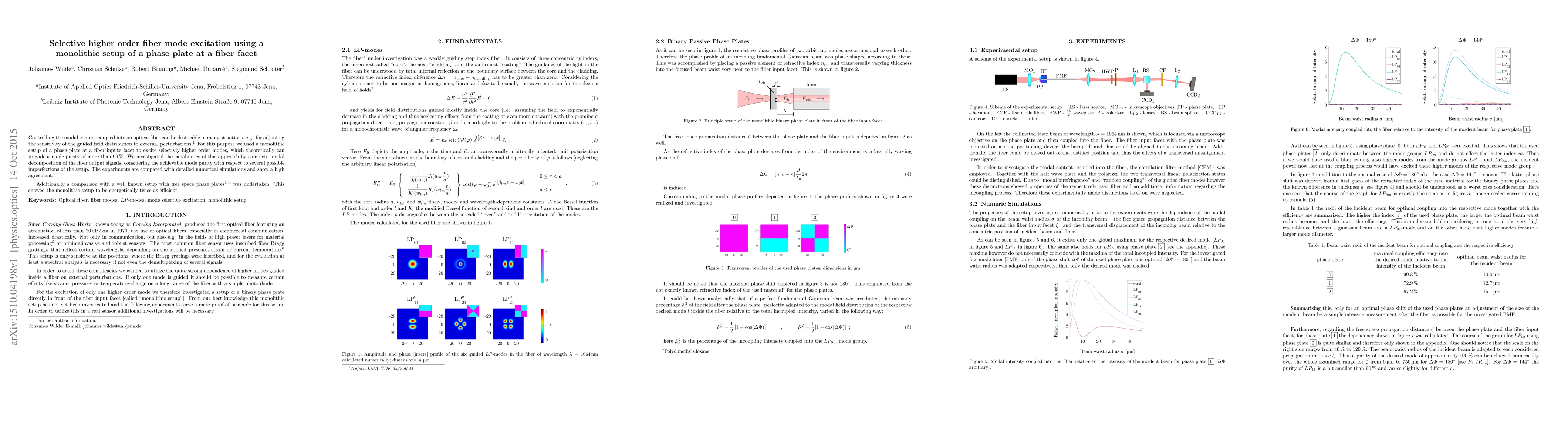Researchers developed a monolithic setup to selectively excite higher-order modes in optical fibers, achieving high mode purity of over 99% with lower energy efficiency than free space phase plates.